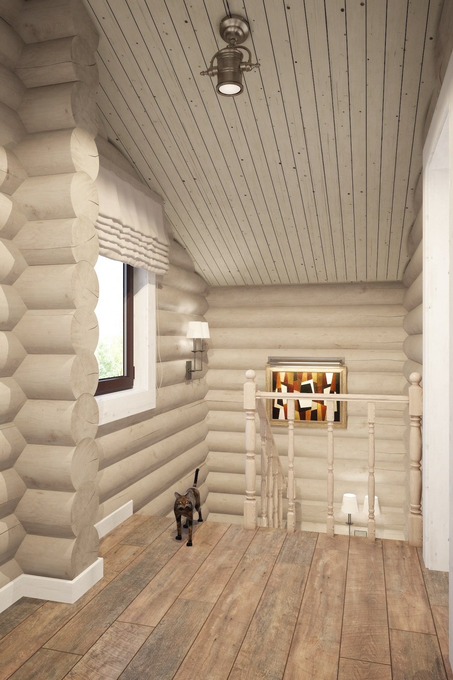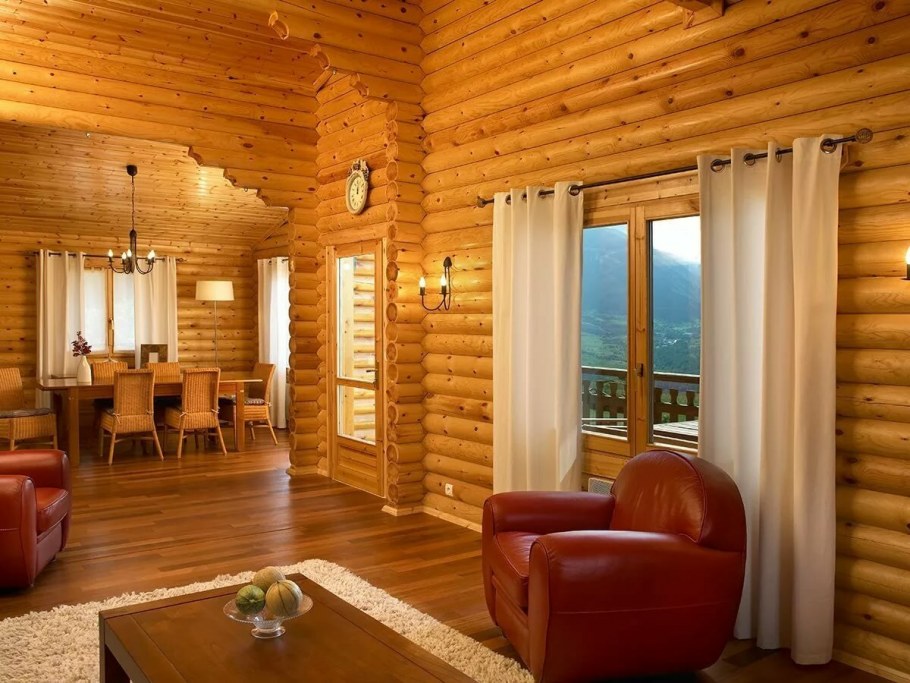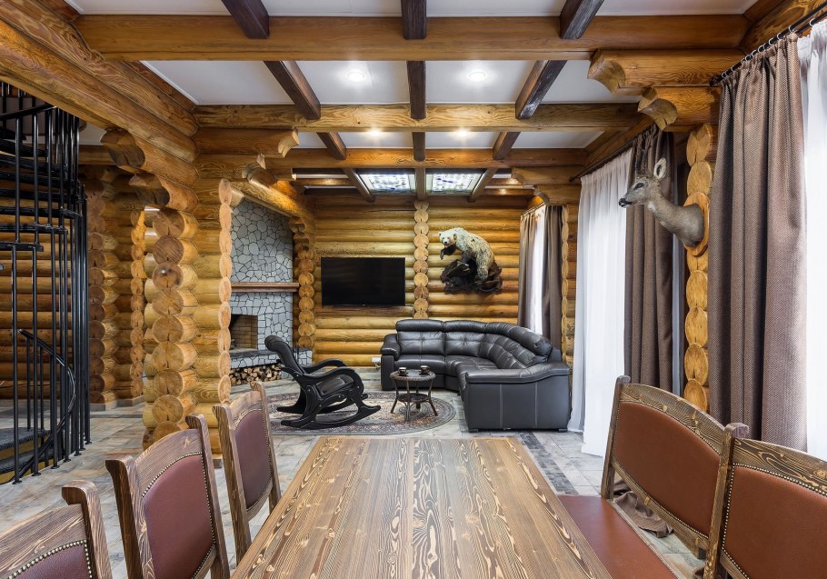 Дом из оцилиндрованного бревна интерьер кухня гостиная