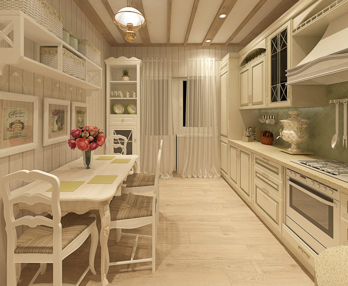 Узкая кухня в стиле Прованс