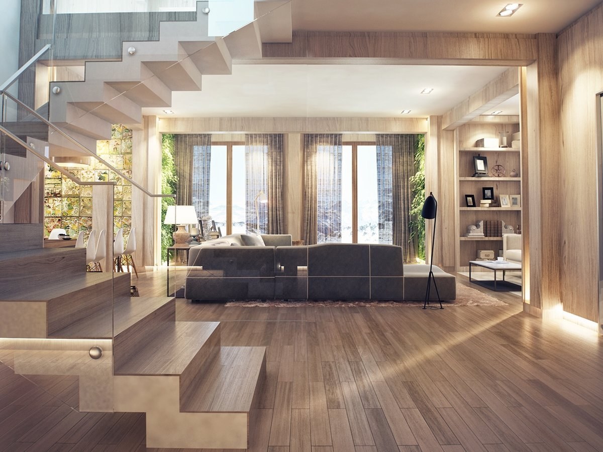 Интерьер с полами под дерево