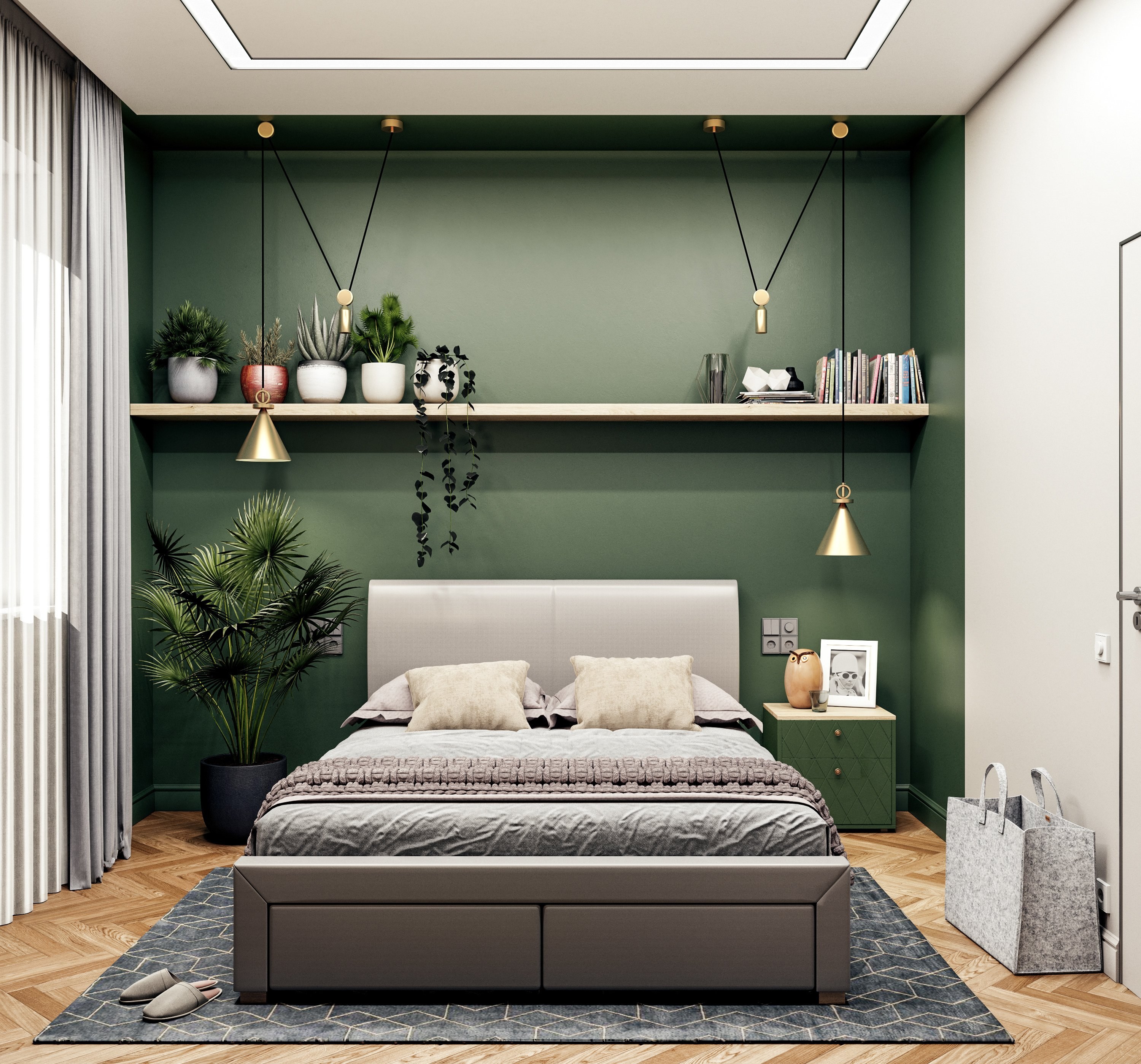 Спальня в зеленых тонах
