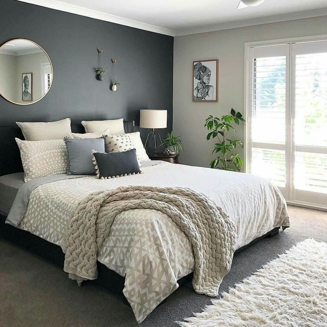 Спальня с темными стенами