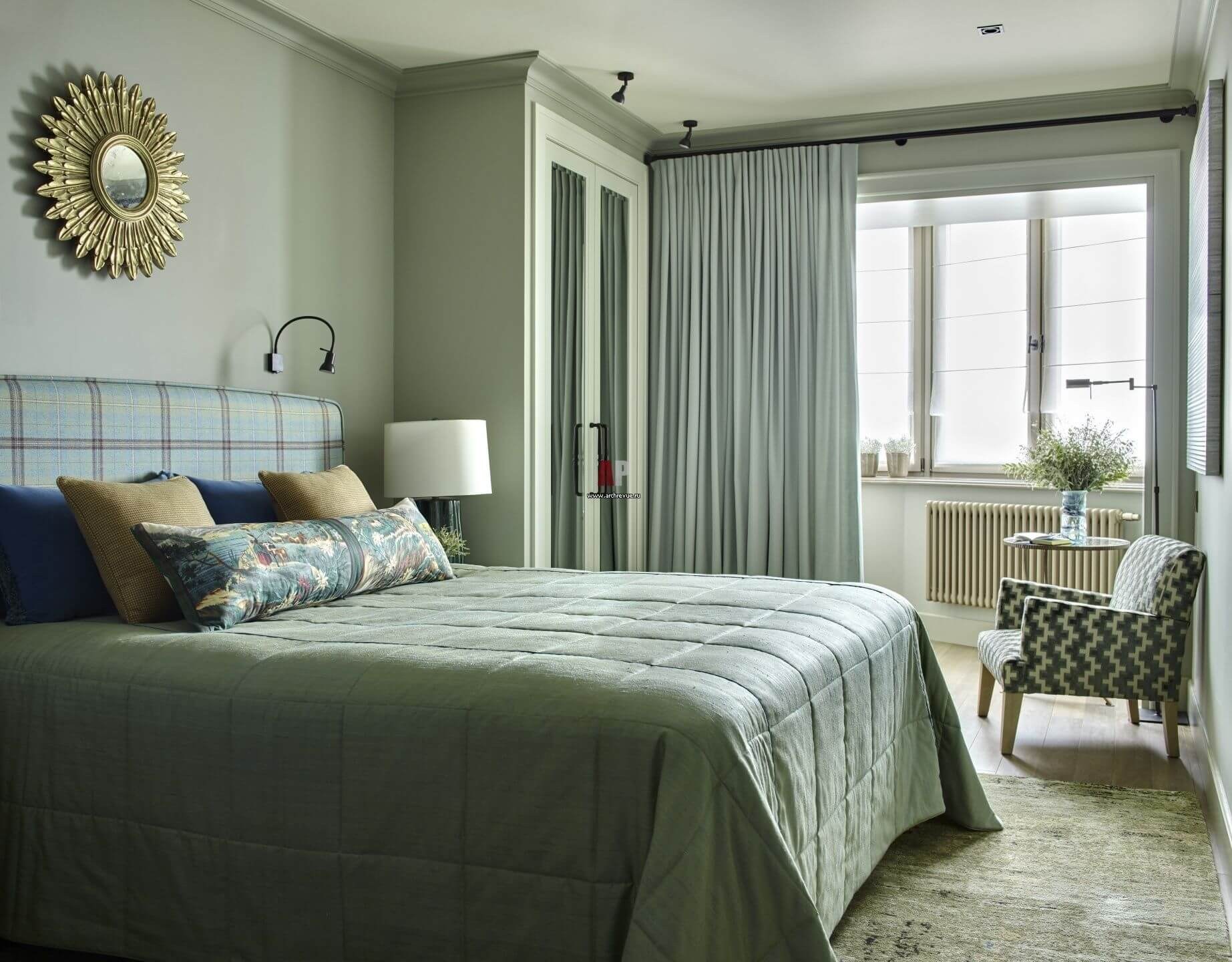 Серо зеленая спальня