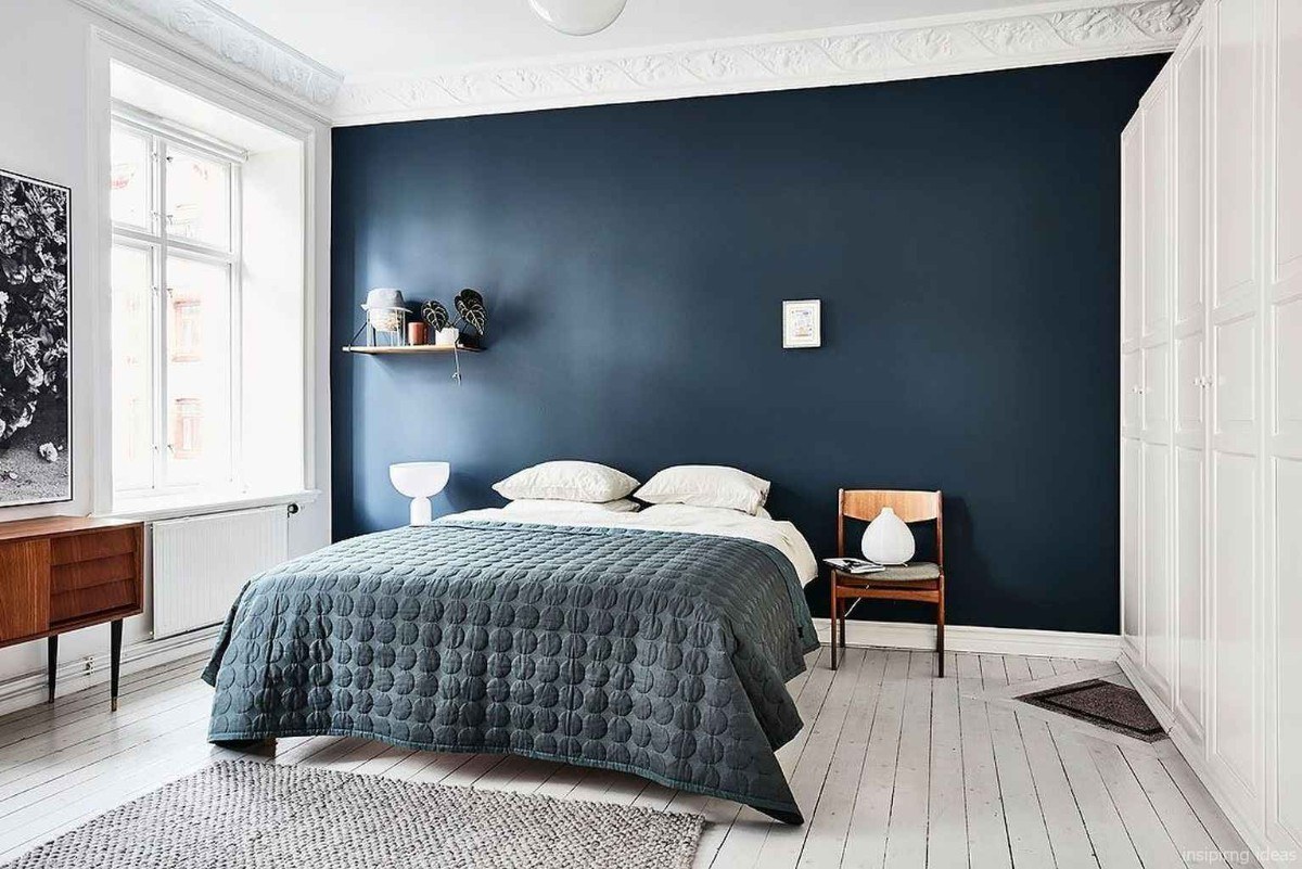 Акцентная стена в спальне в скандинавском стиле
