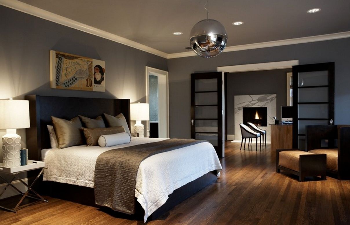 Серые стены в спальне
