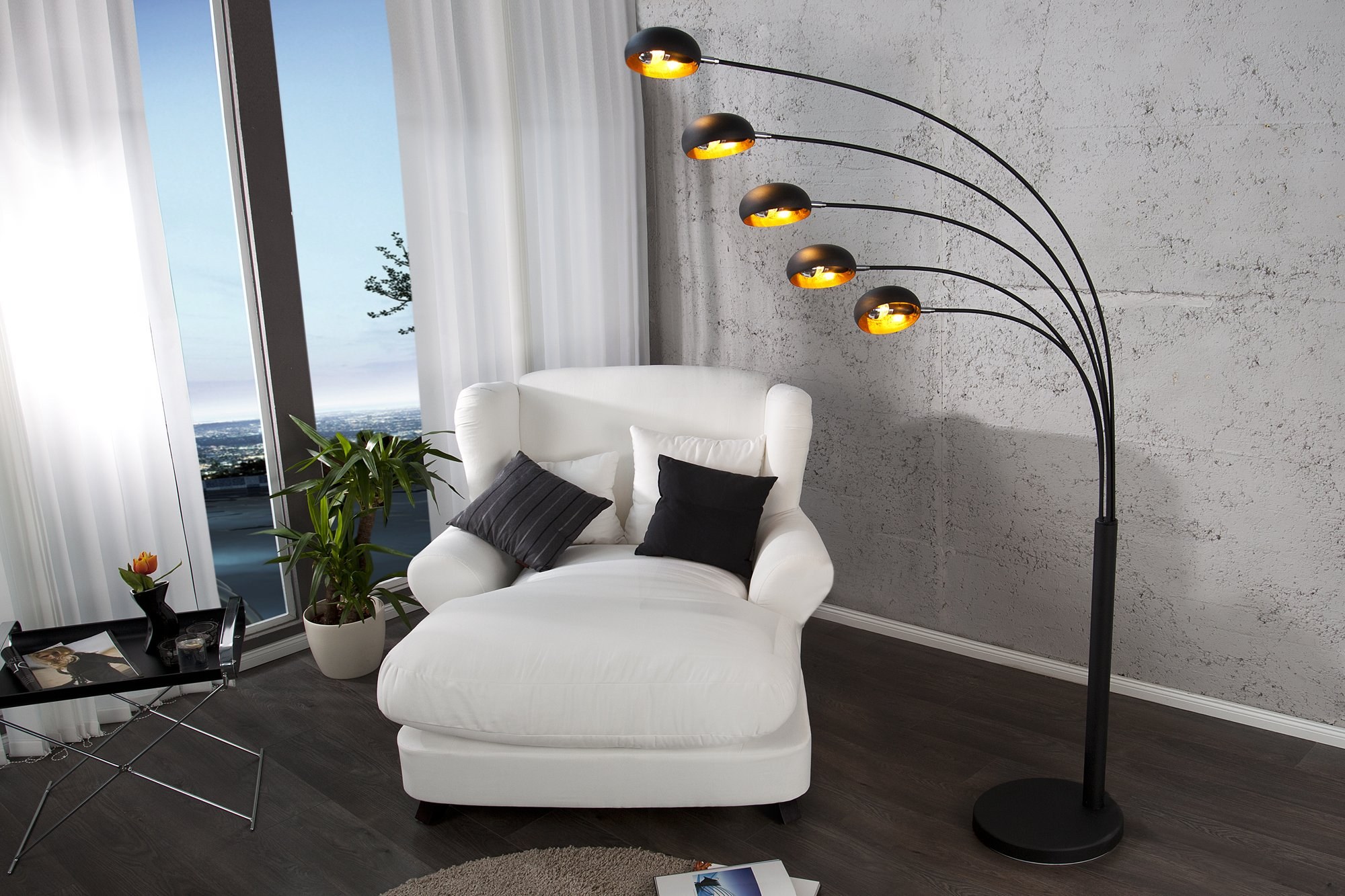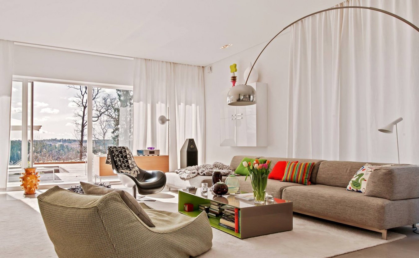 Торшеры в интерьере гостиной (73 фото)