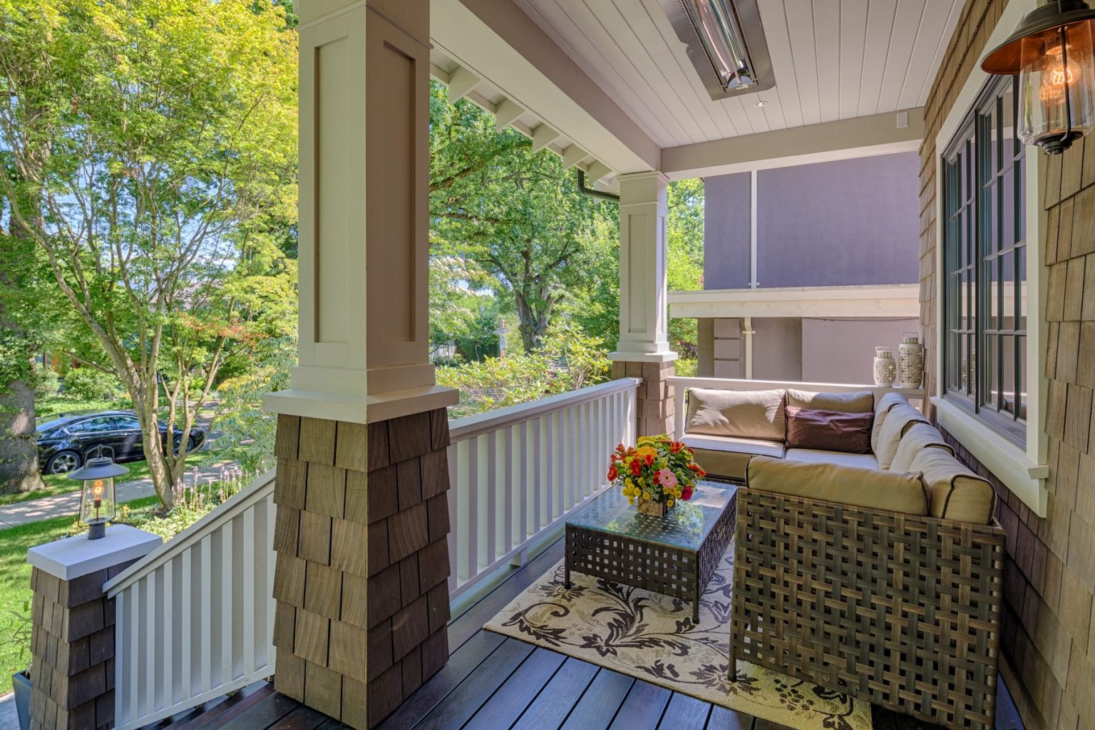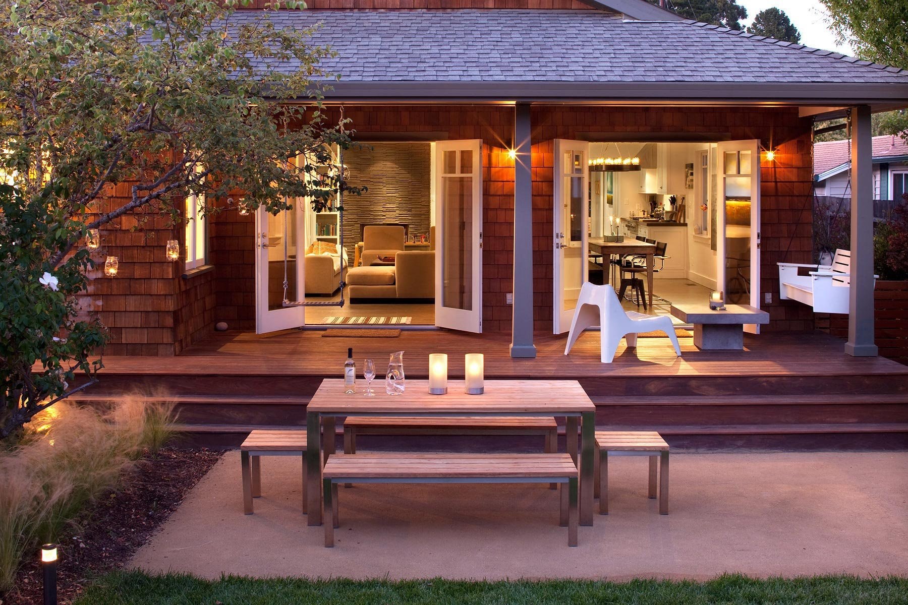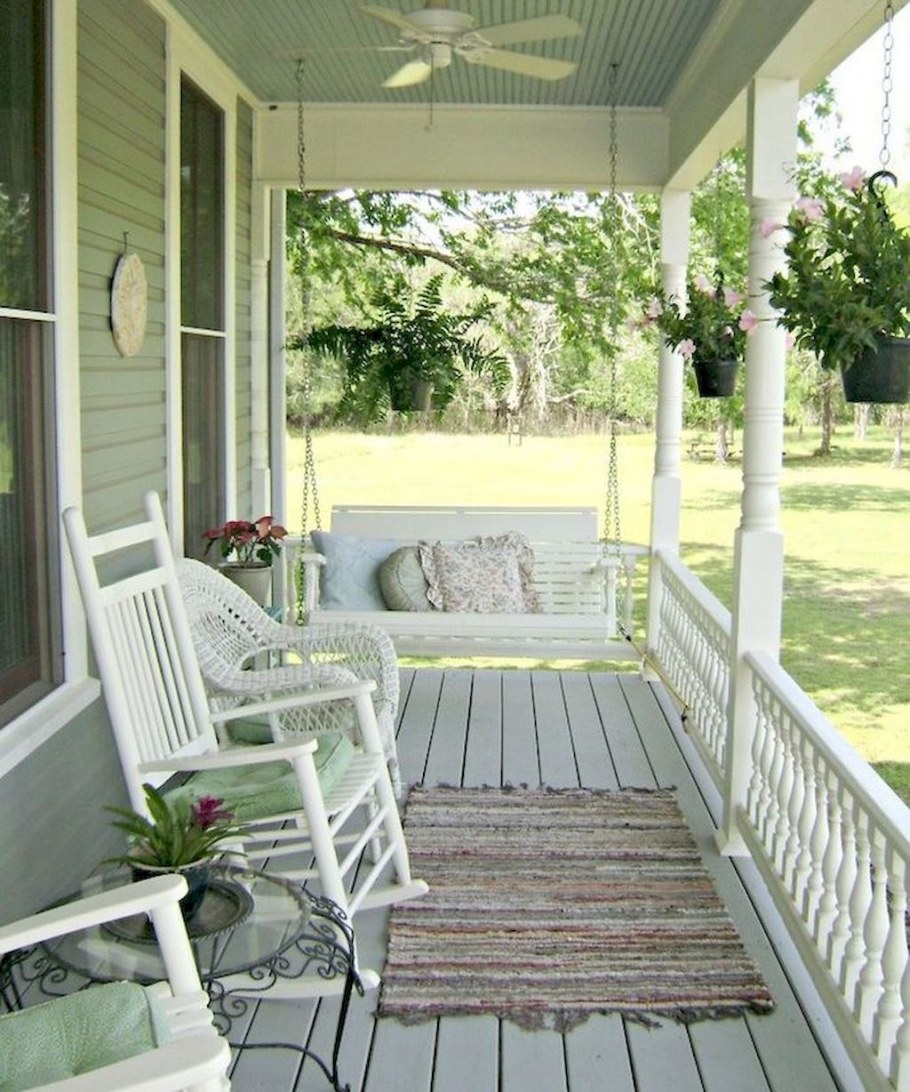 Веранда в частном доме с качелями