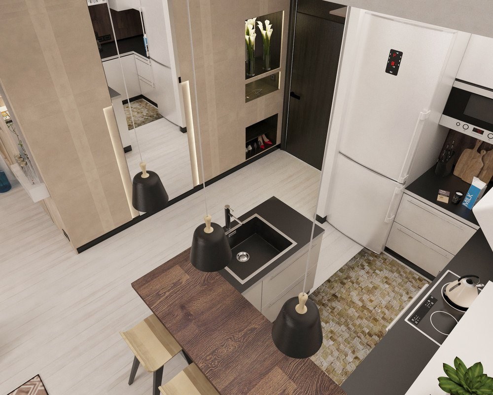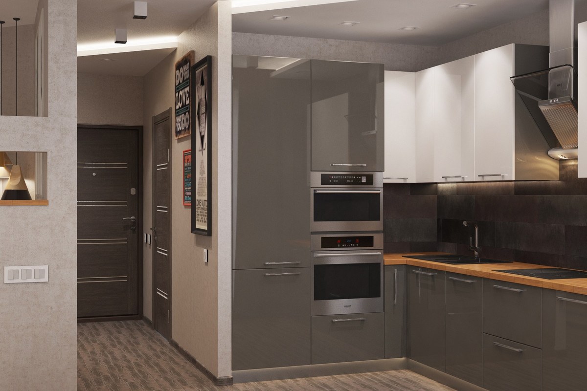 Кухня в коридоре в двухкомнатной квартире (81 фото)