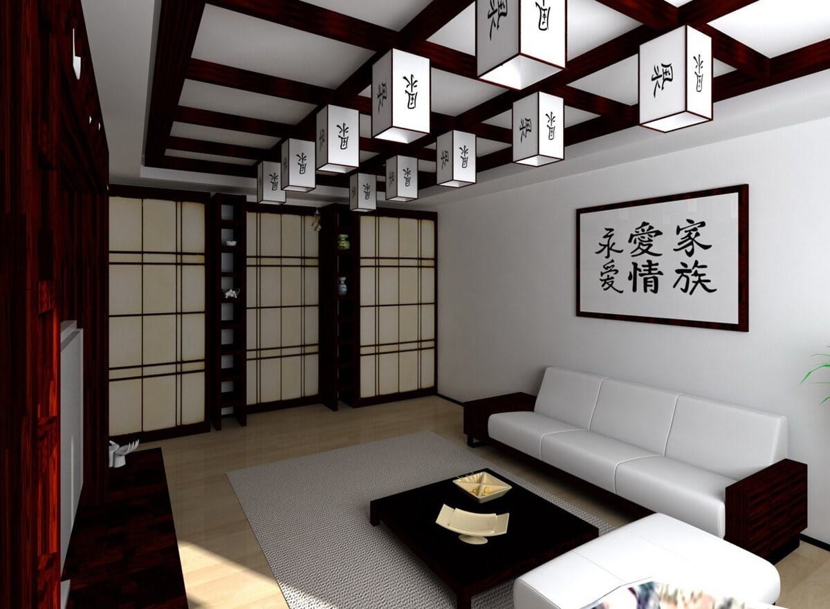 Японский стиль в интерьере гостиной