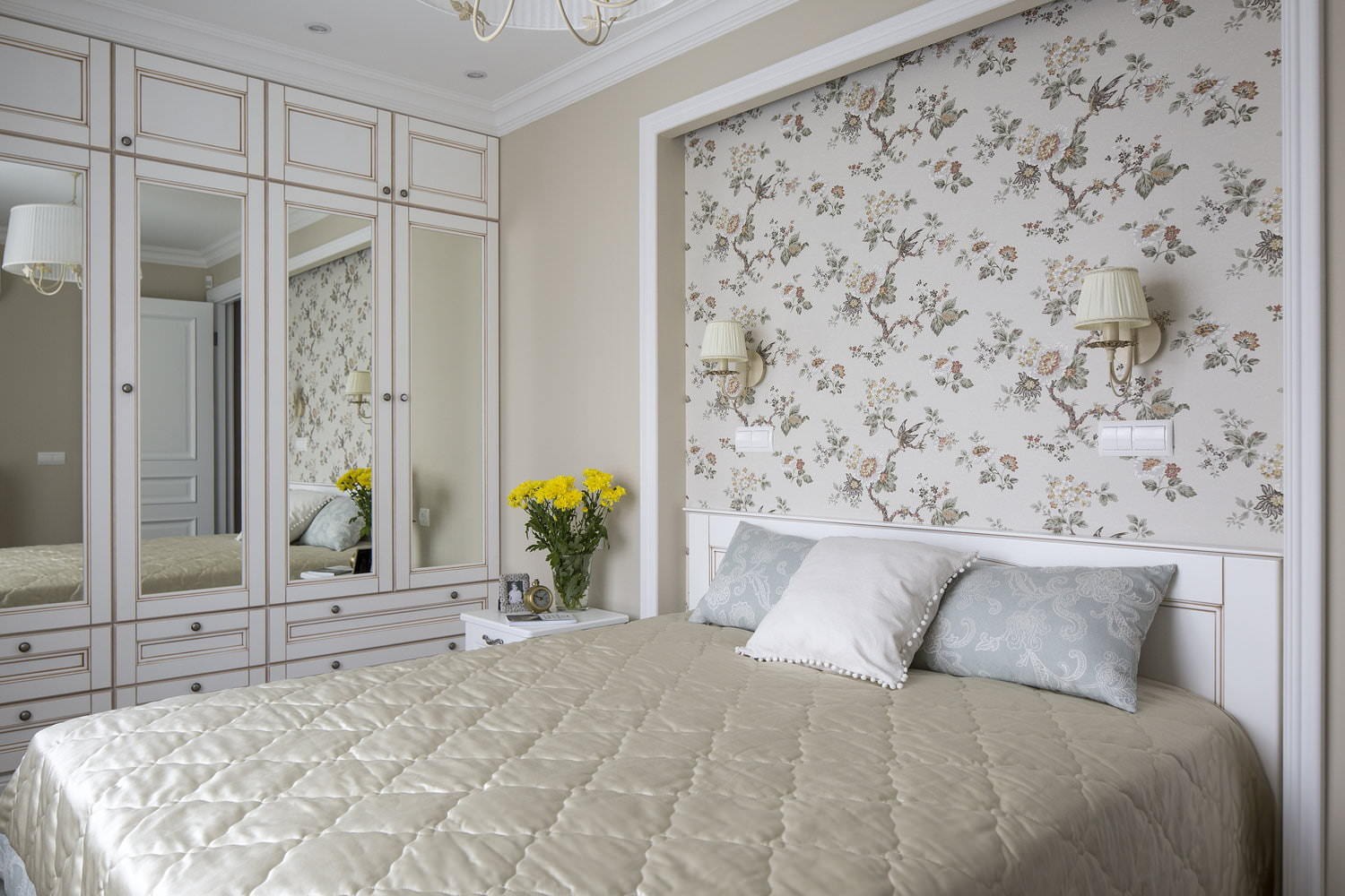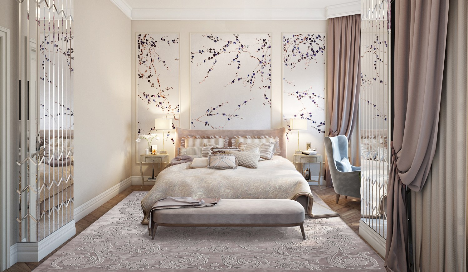 Зеркальные панели в спальне