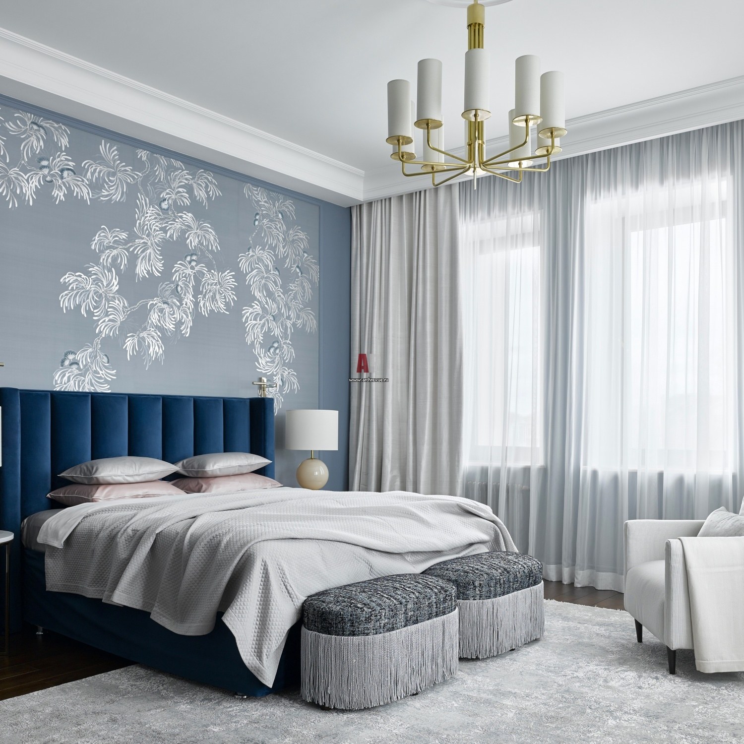 Спальня в синих тонах в современном стиле