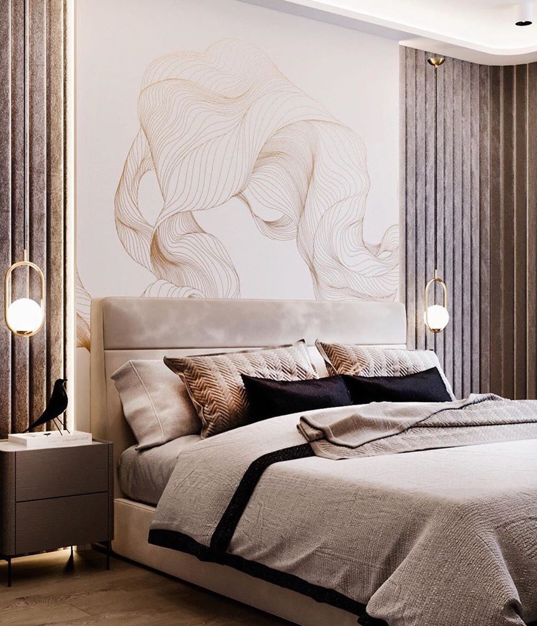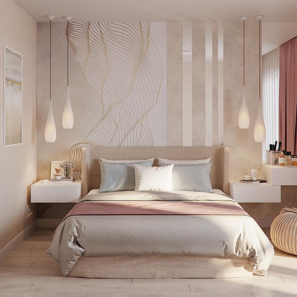 Фреска в спальне в современном стиле