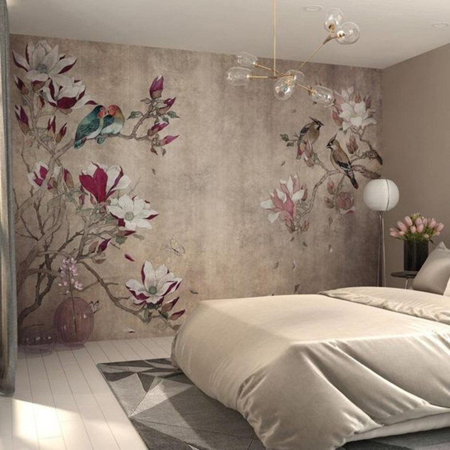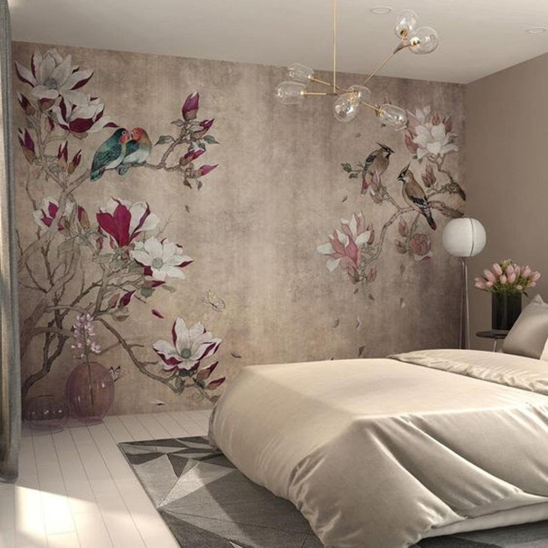 Обои афреско в интерьере спальни
