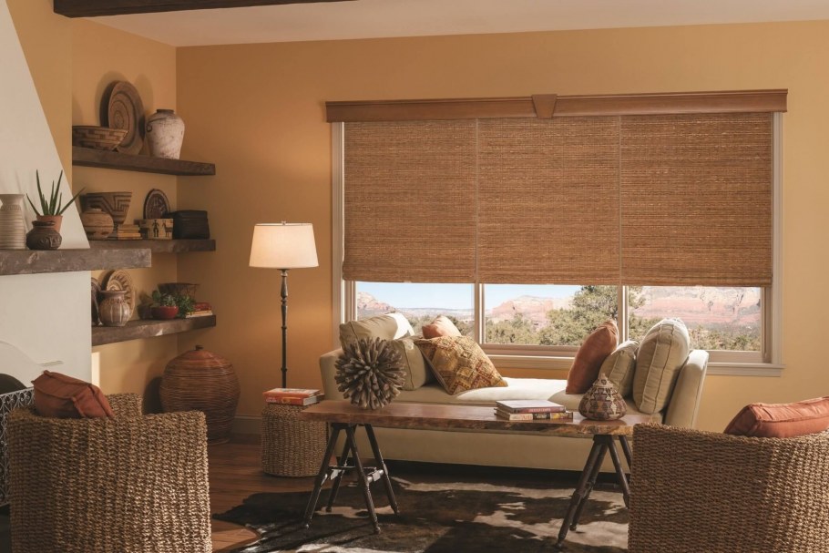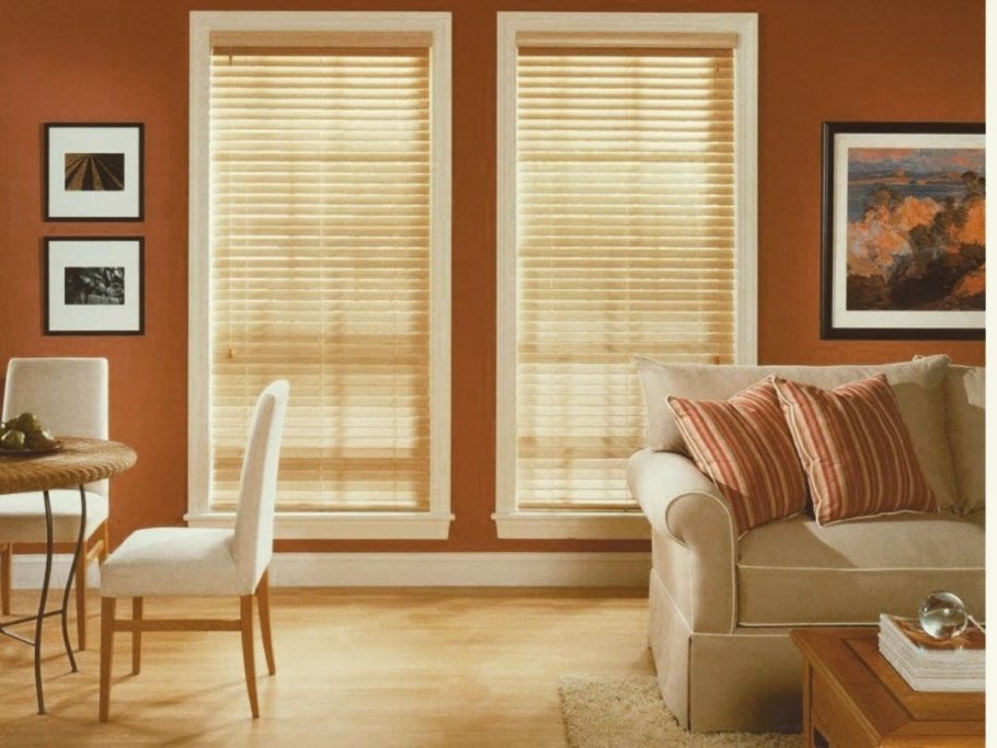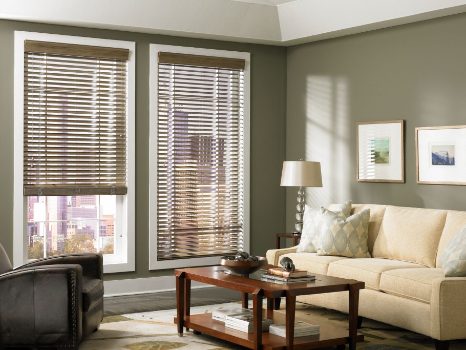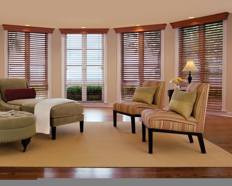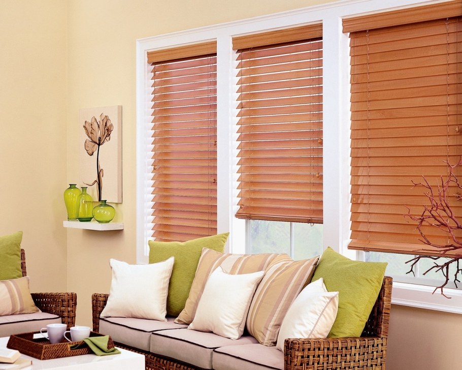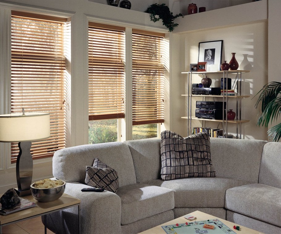 Деревянные жалюзи в гостиной