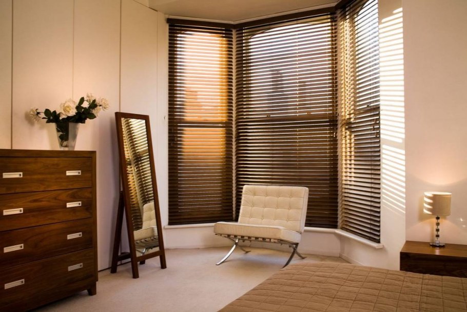 Деревянные жалюзи в спальне