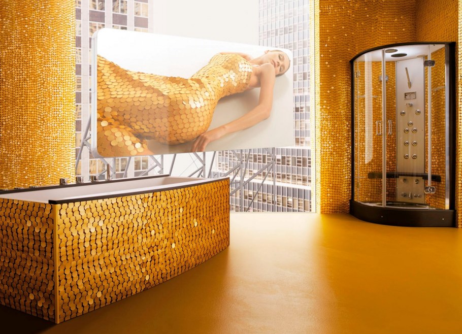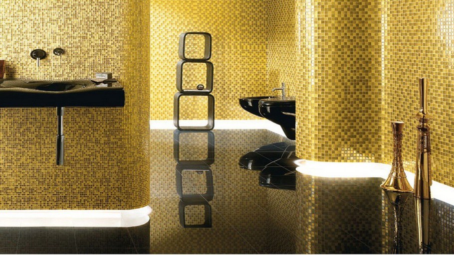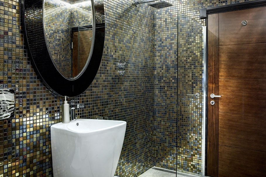 Золотистая мозаика в ванной
