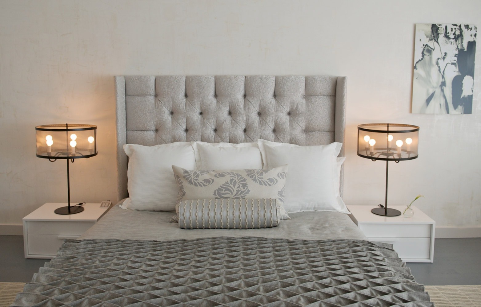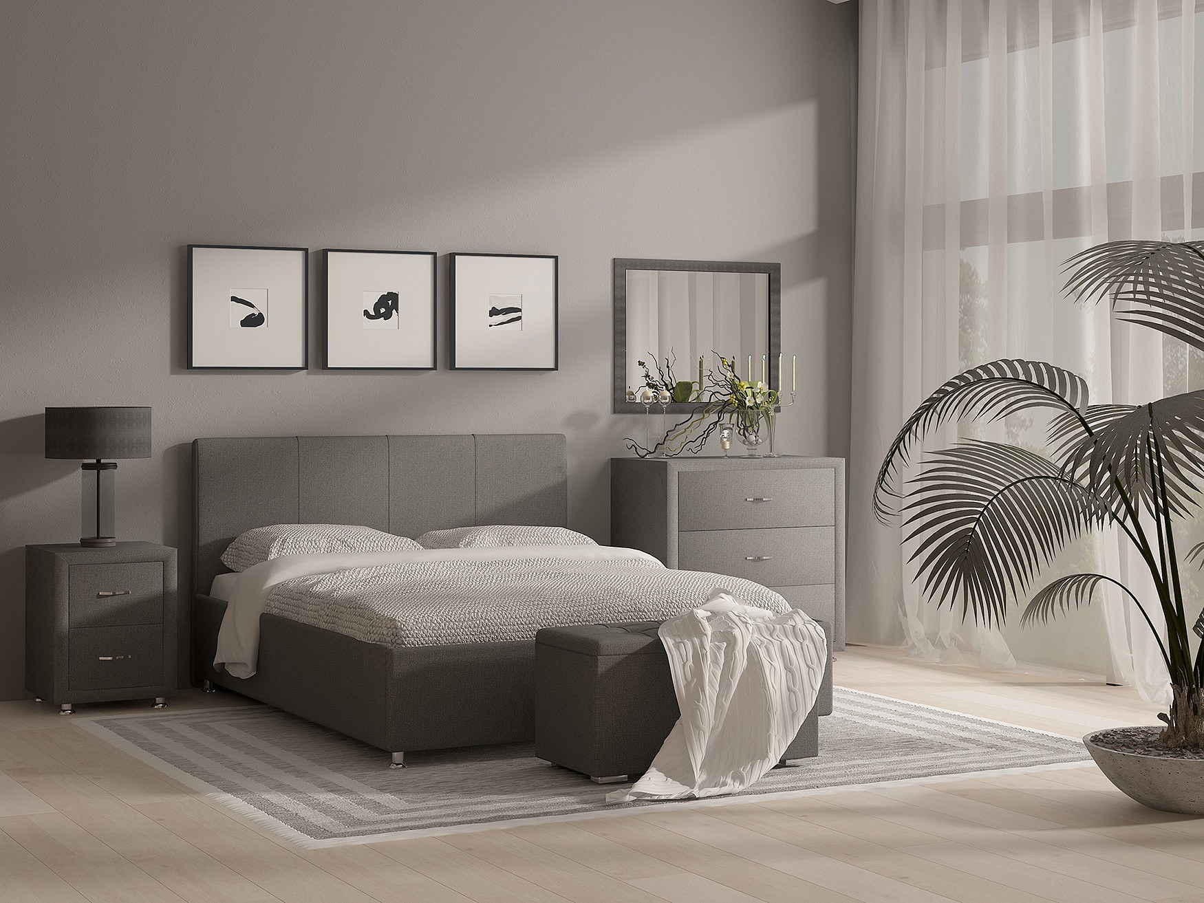 Кровать в серых тонах