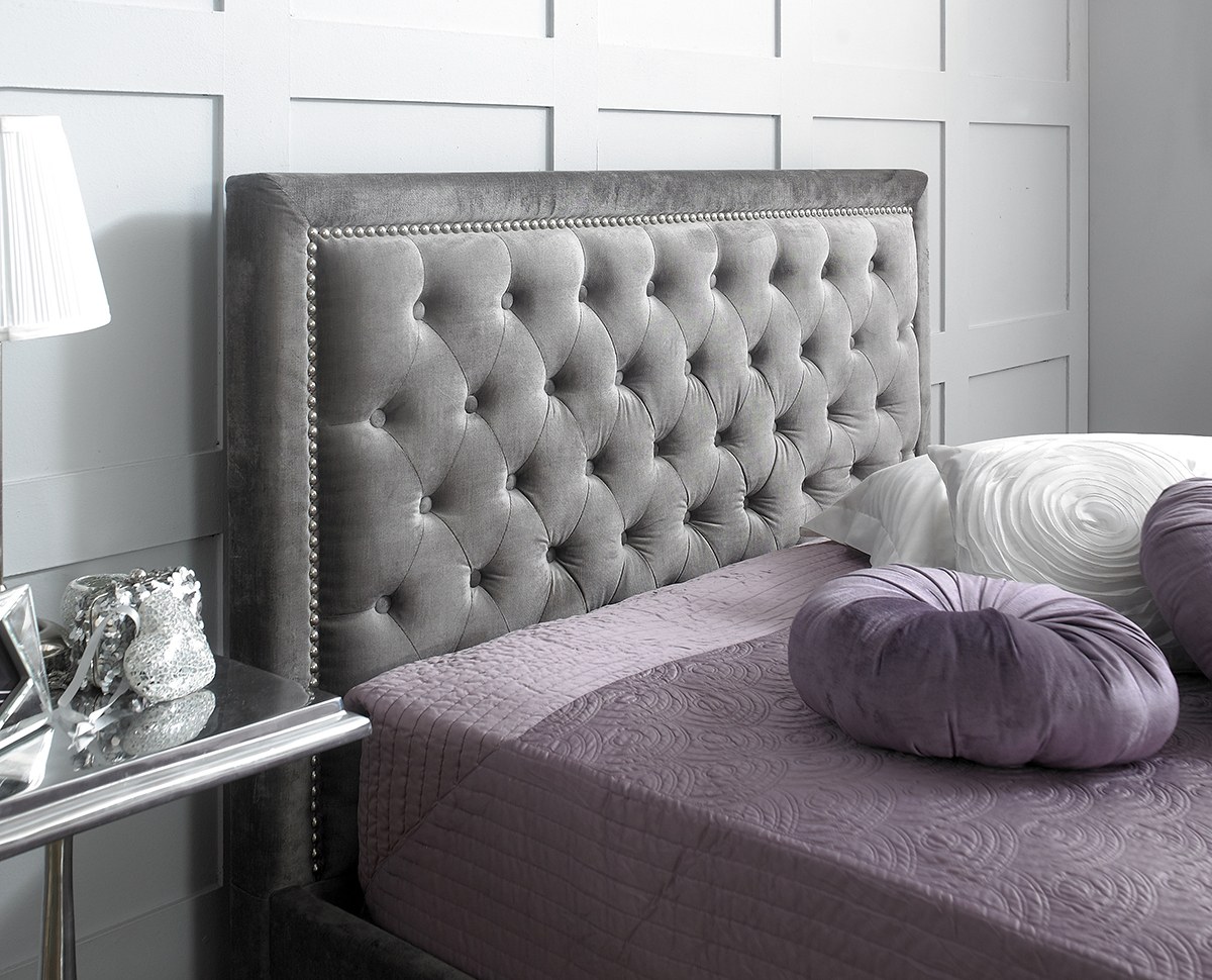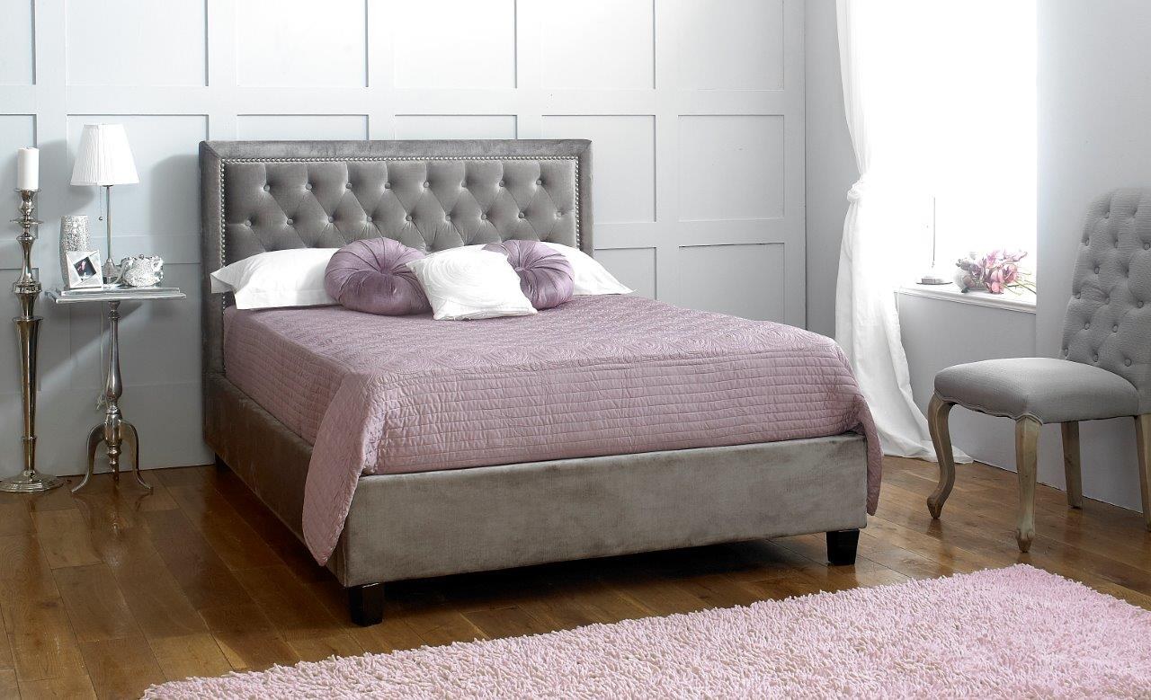 Кровать с велюровым изголовьем