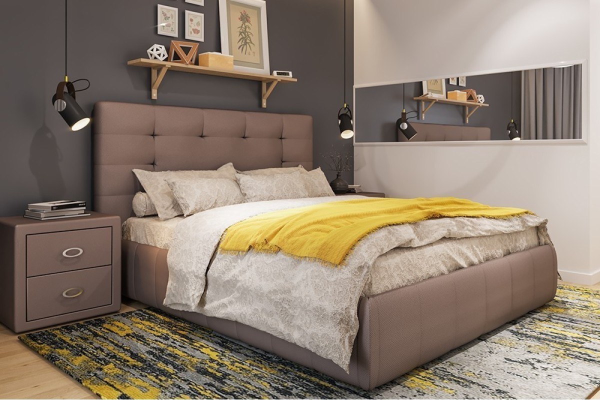 Кровать с мягким изголовьем в интерьере