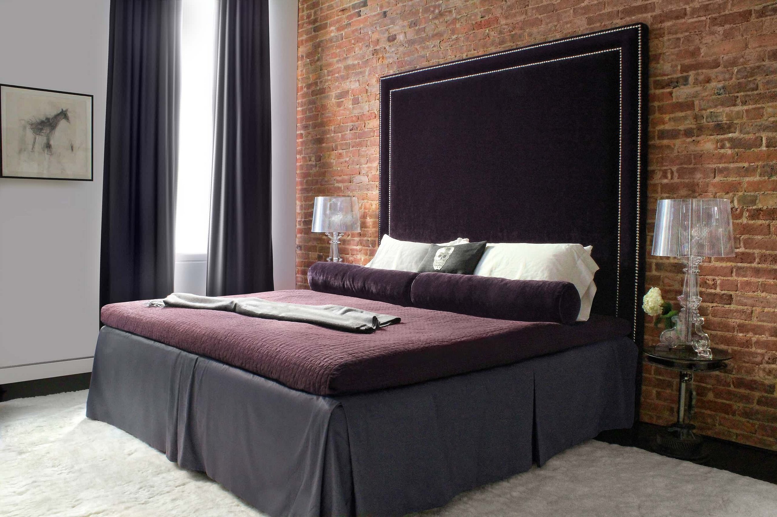 Бархатная кровать в интерьере