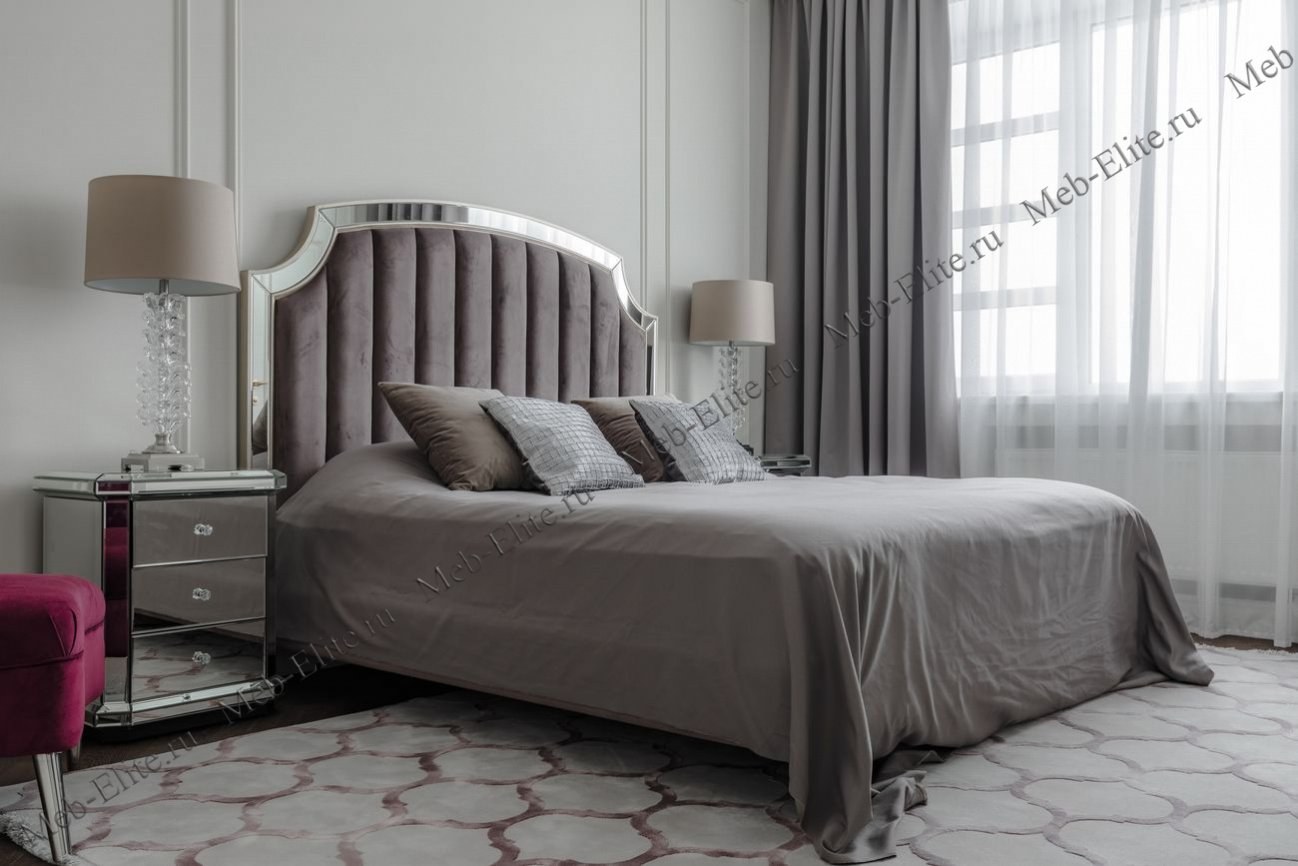 Кровать двуспальная с зеркальными вставками (розово-серая) kfe007-69