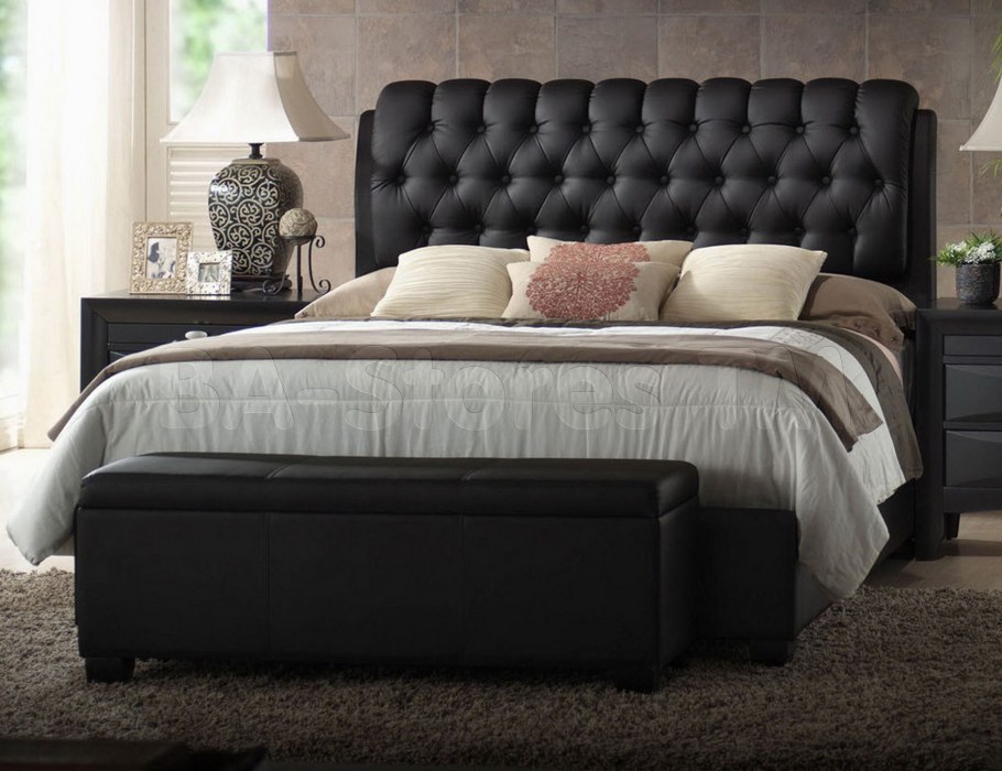 Кровать с кожаным изголовьем