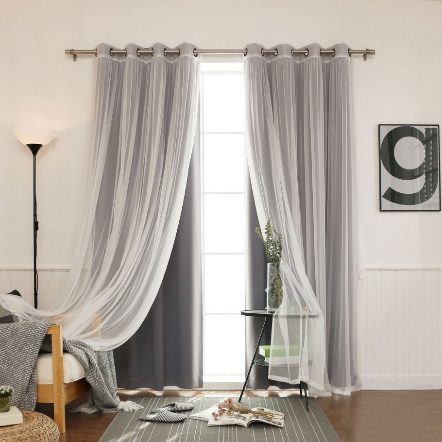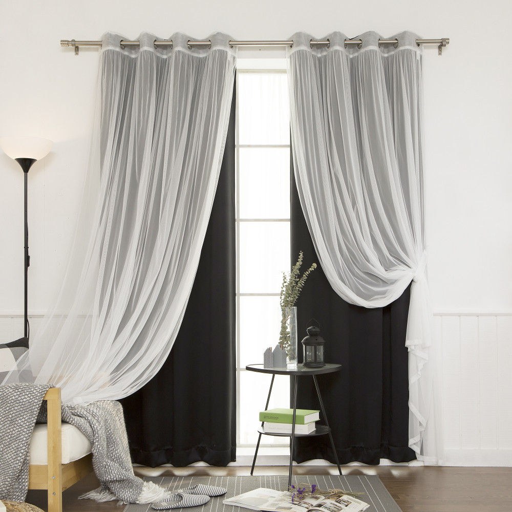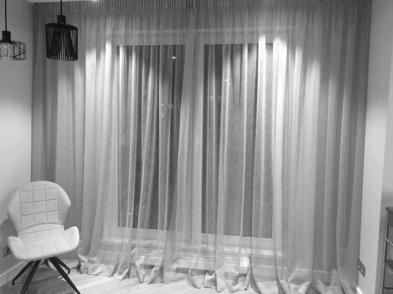 Черная тюль с белыми шторами