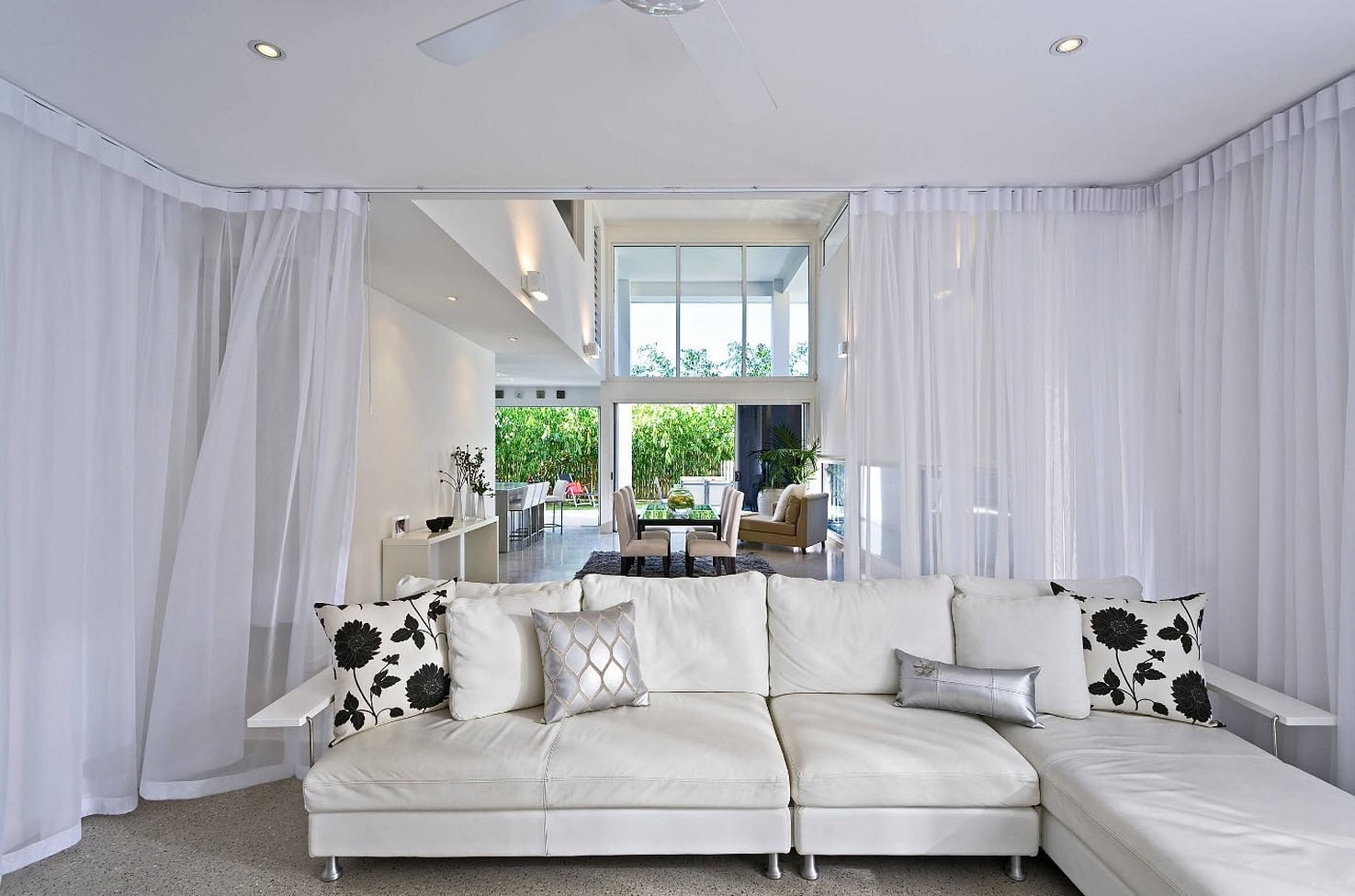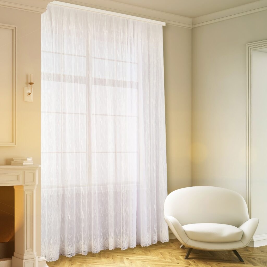 Белая тюль и белые шторы в интерьере (75 фото)