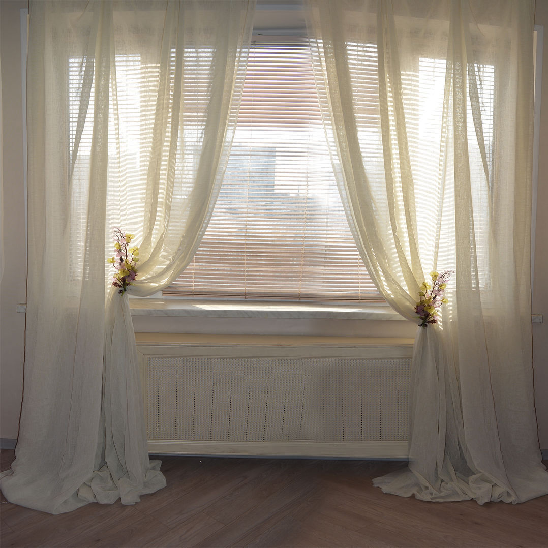 Белые льняные шторы в интерьере