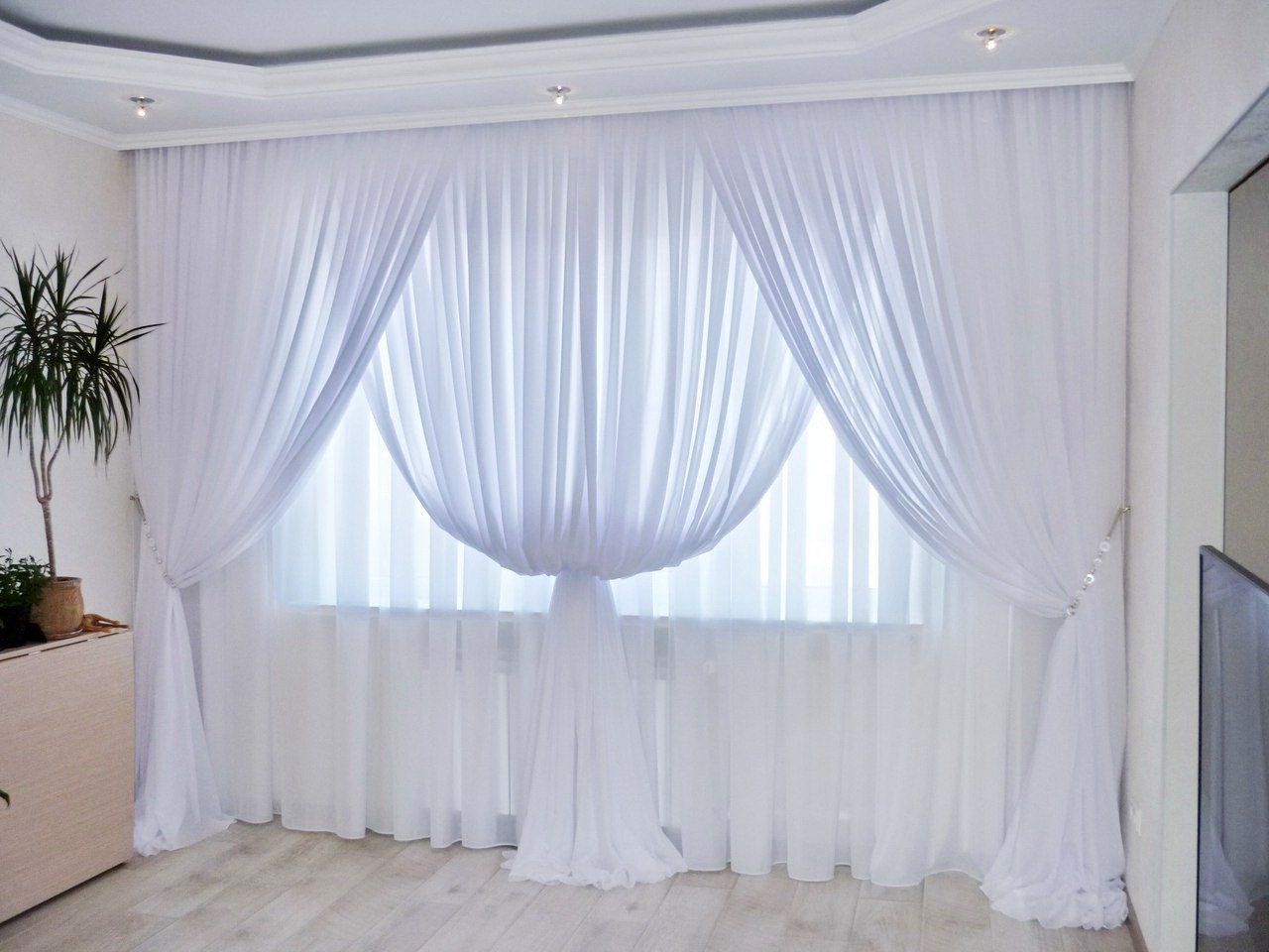 Белые шторы в гостиной