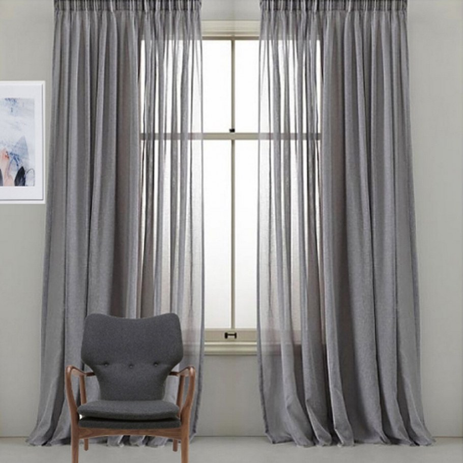 Серые льняные шторы в интерьере