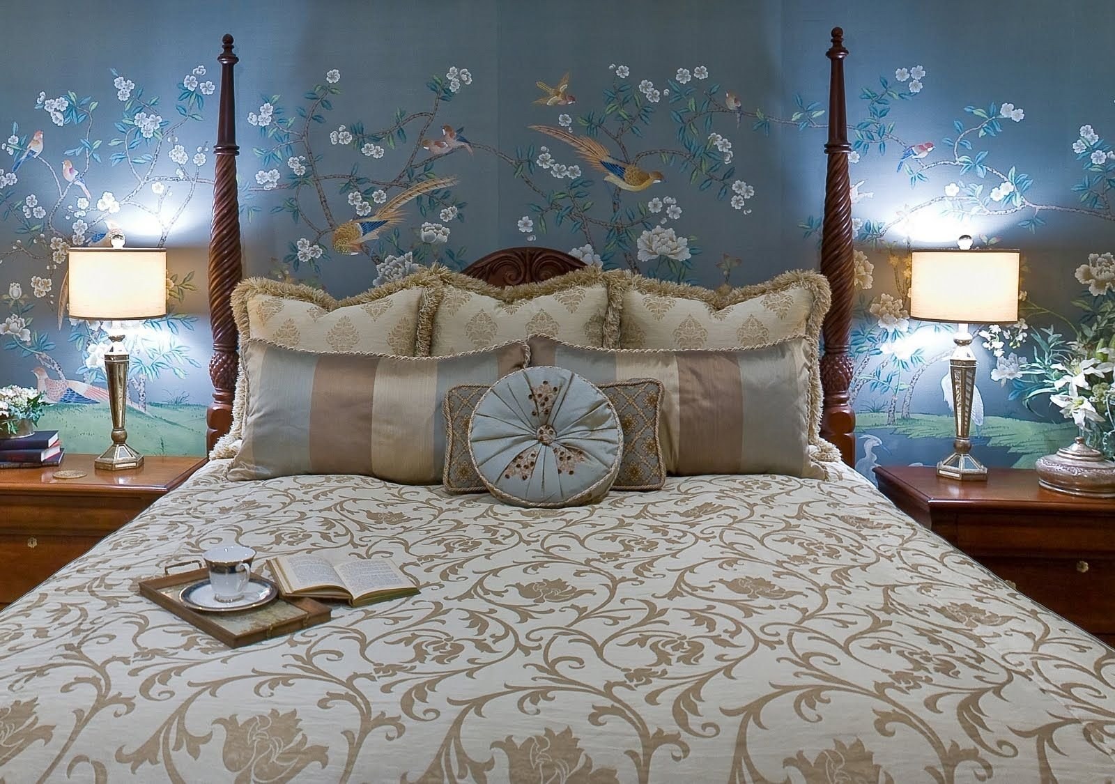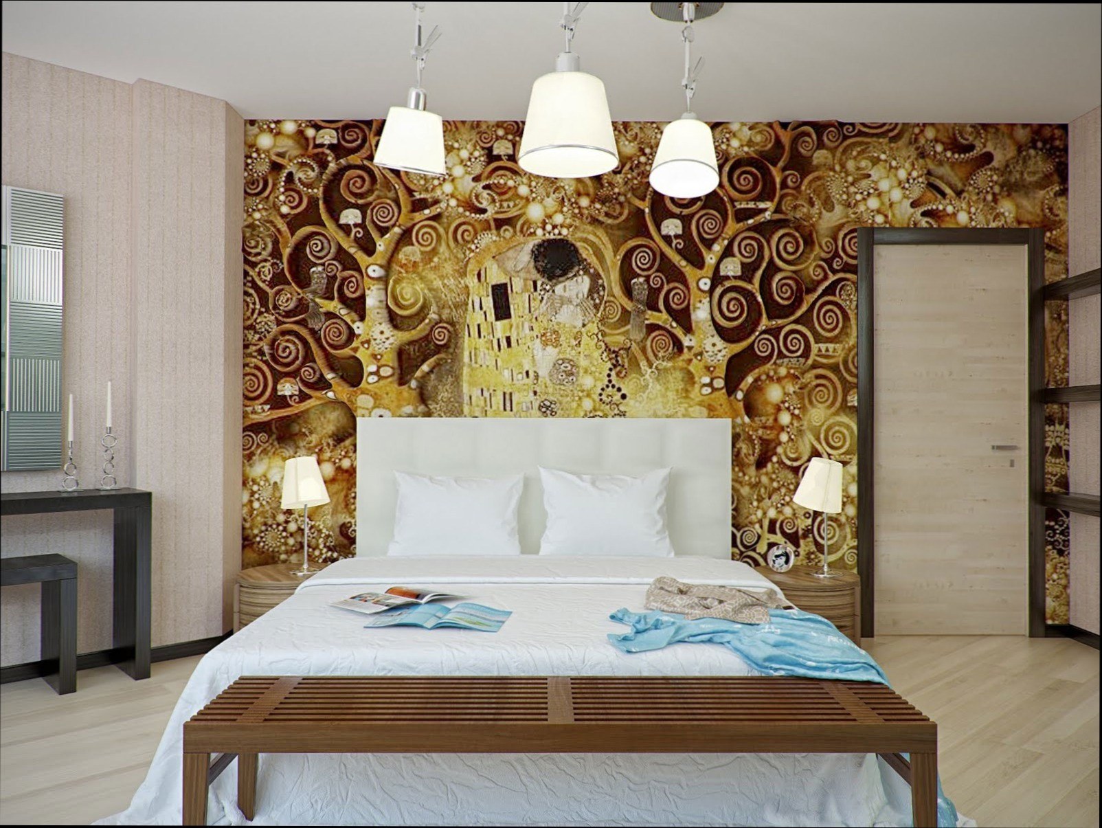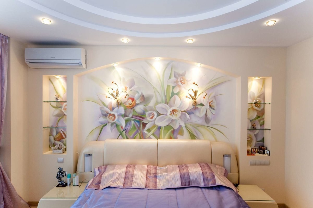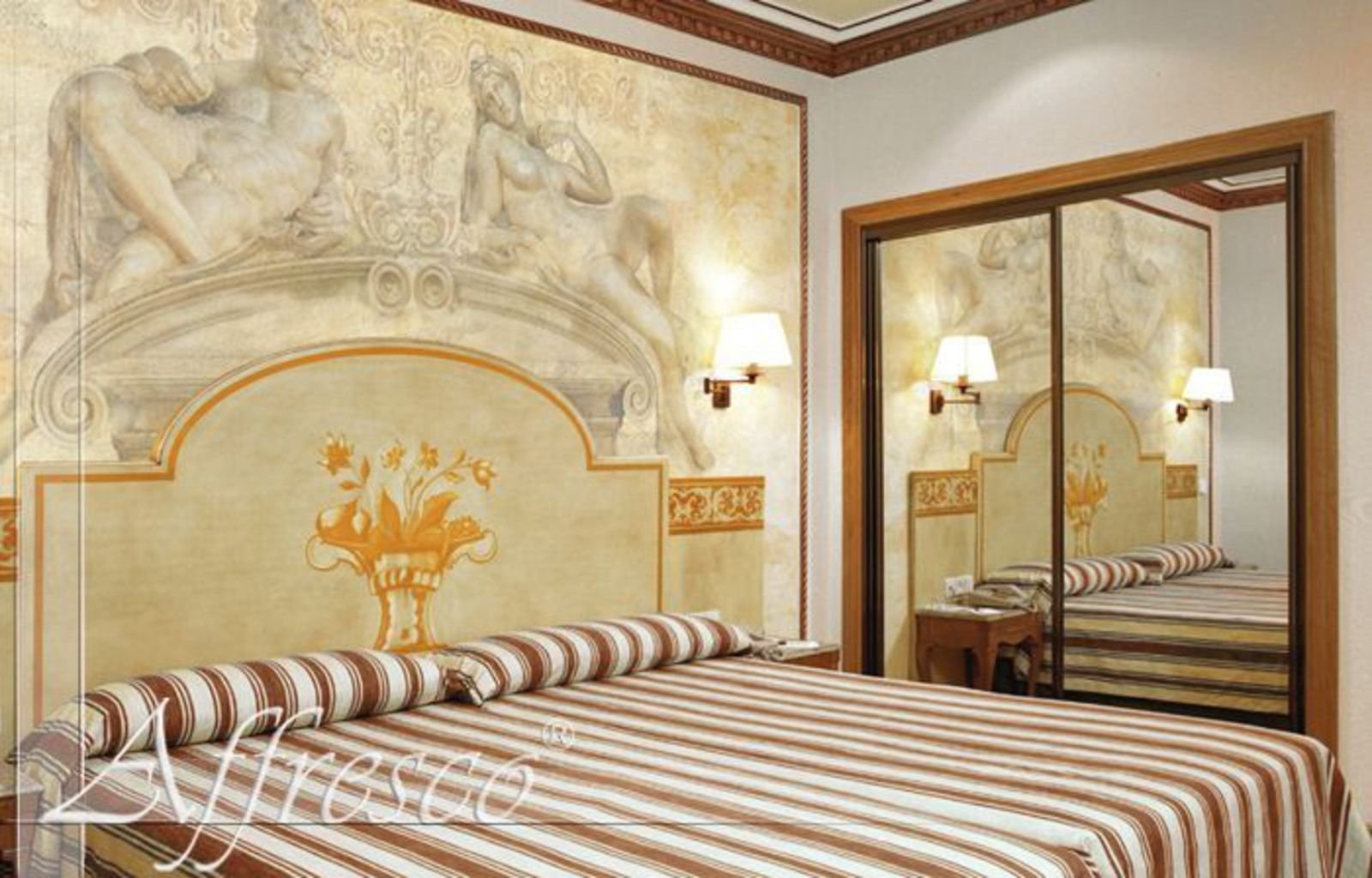 Фрески в интерьере спальни в изголовье кровати (81 фото)