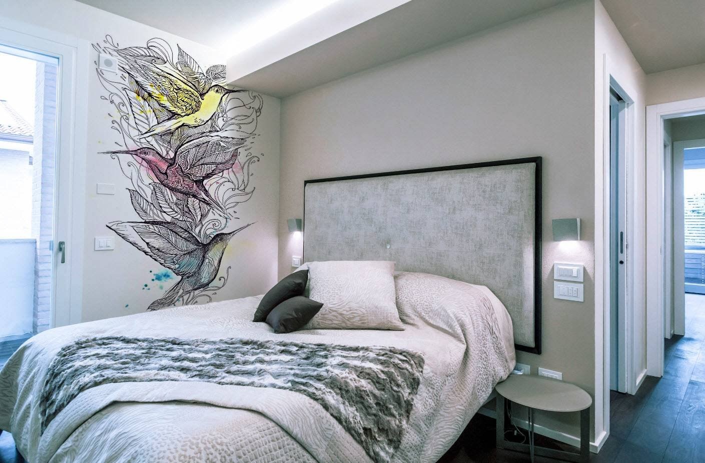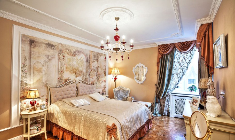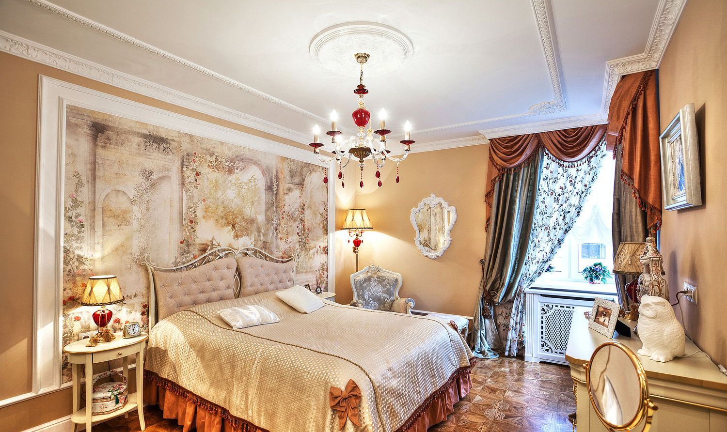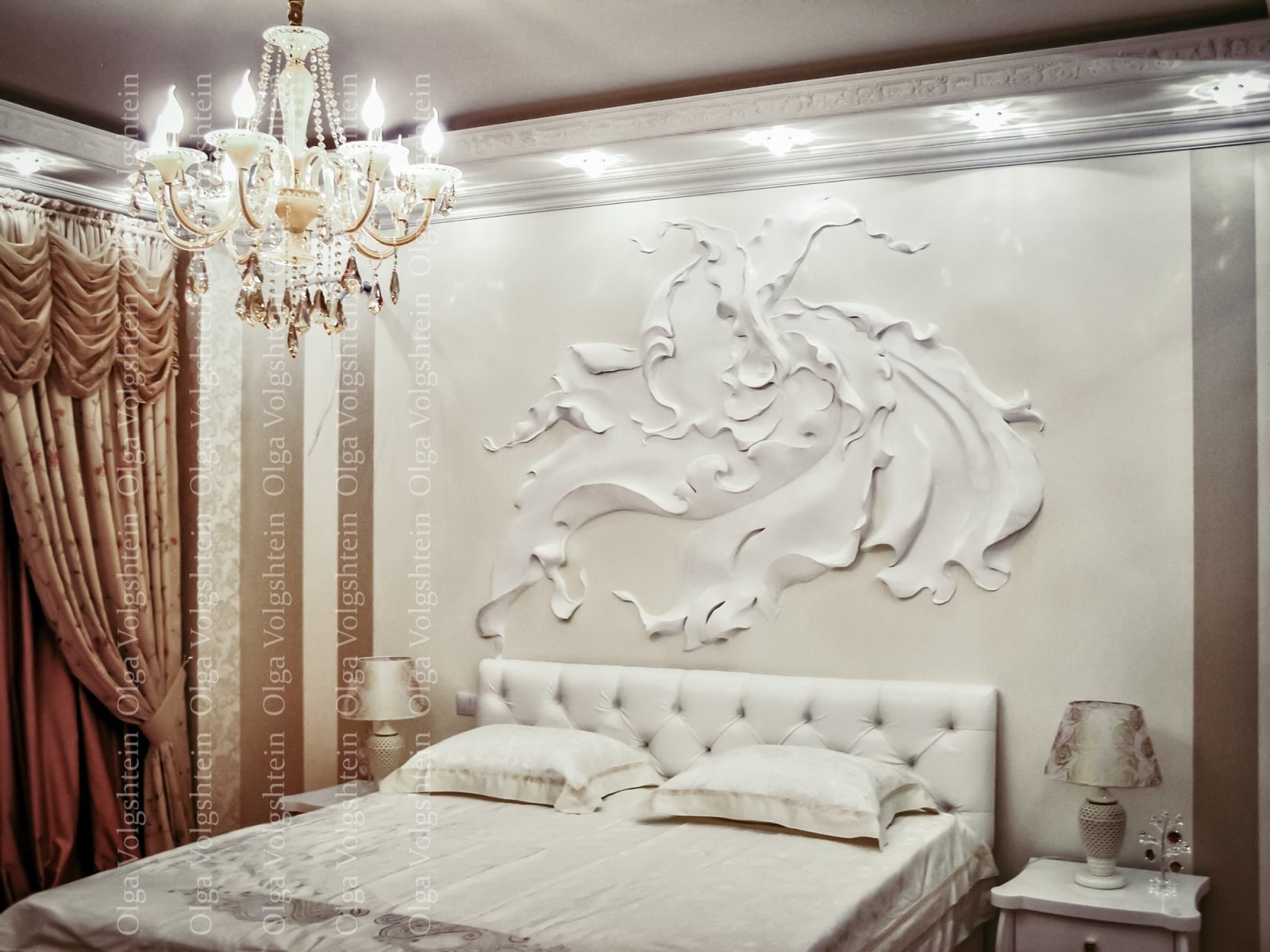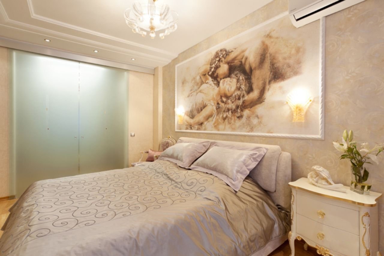 Фрески в интерьере спальни в изголовье кровати (81 фото)