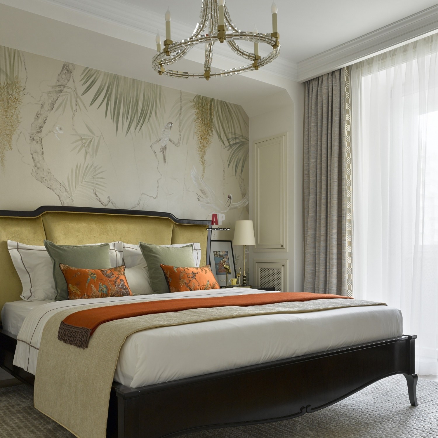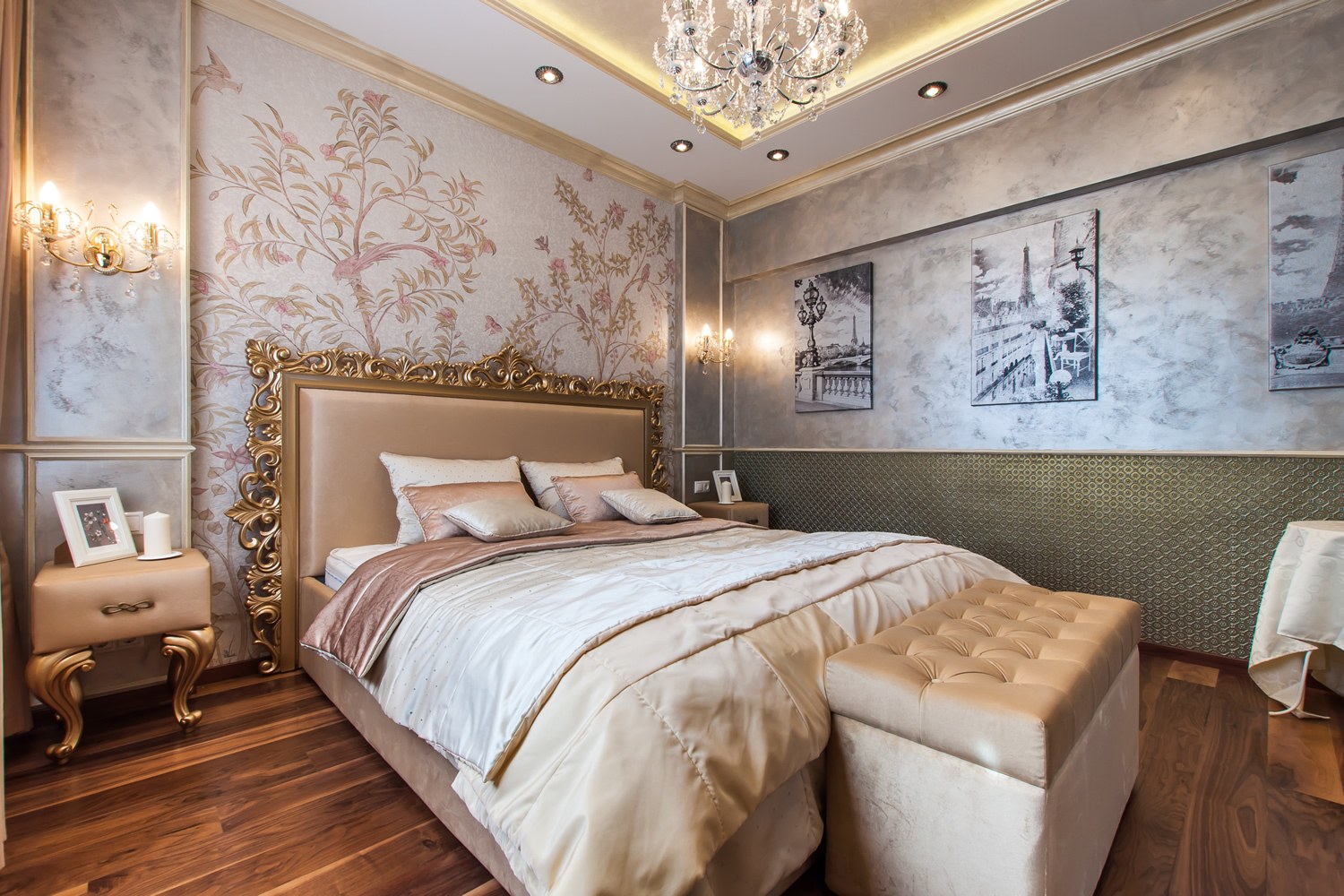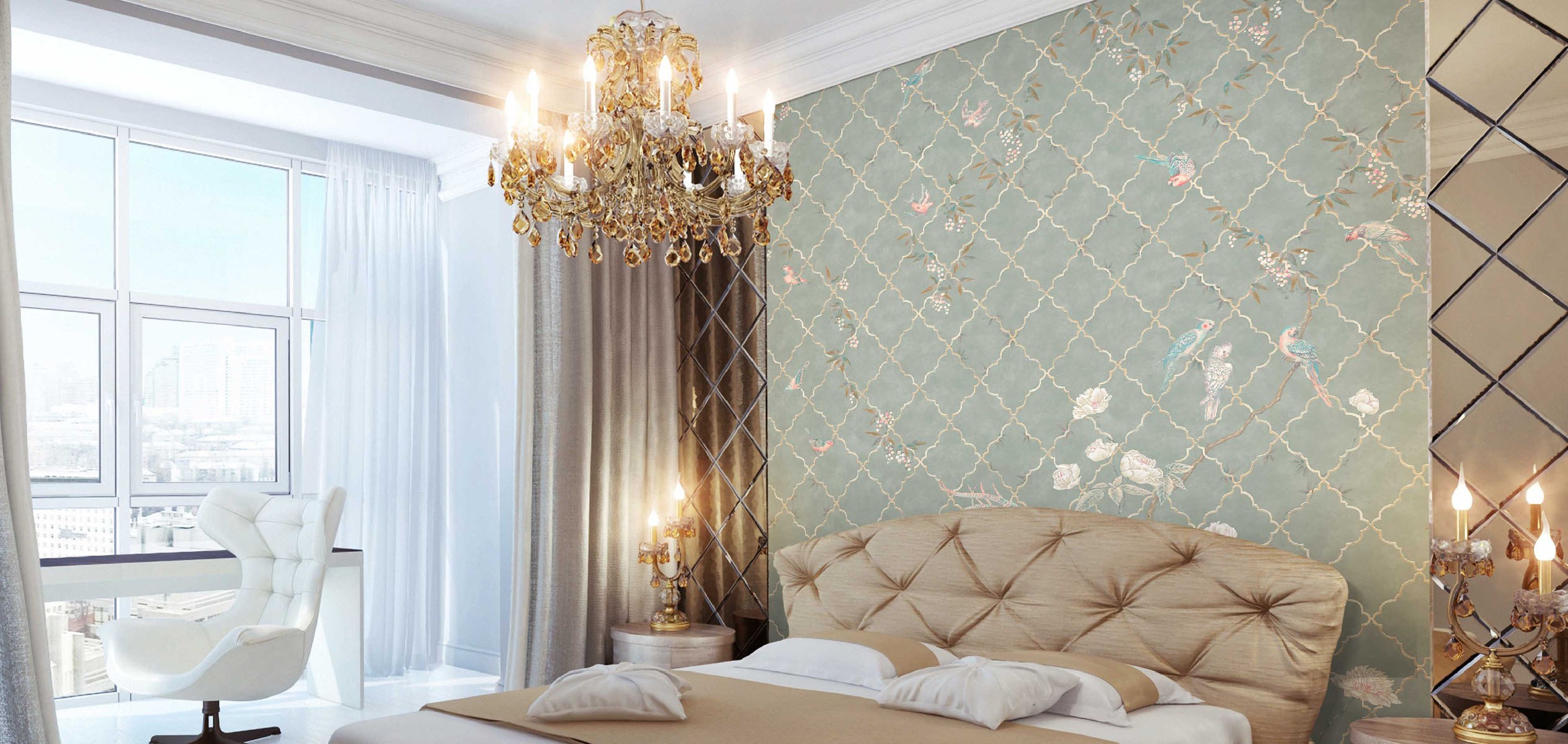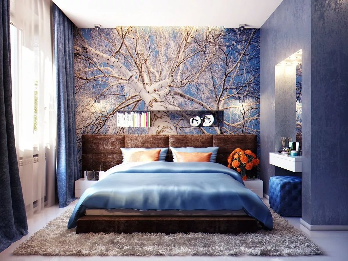 Фрески в интерьере спальни в изголовье кровати (81 фото)
