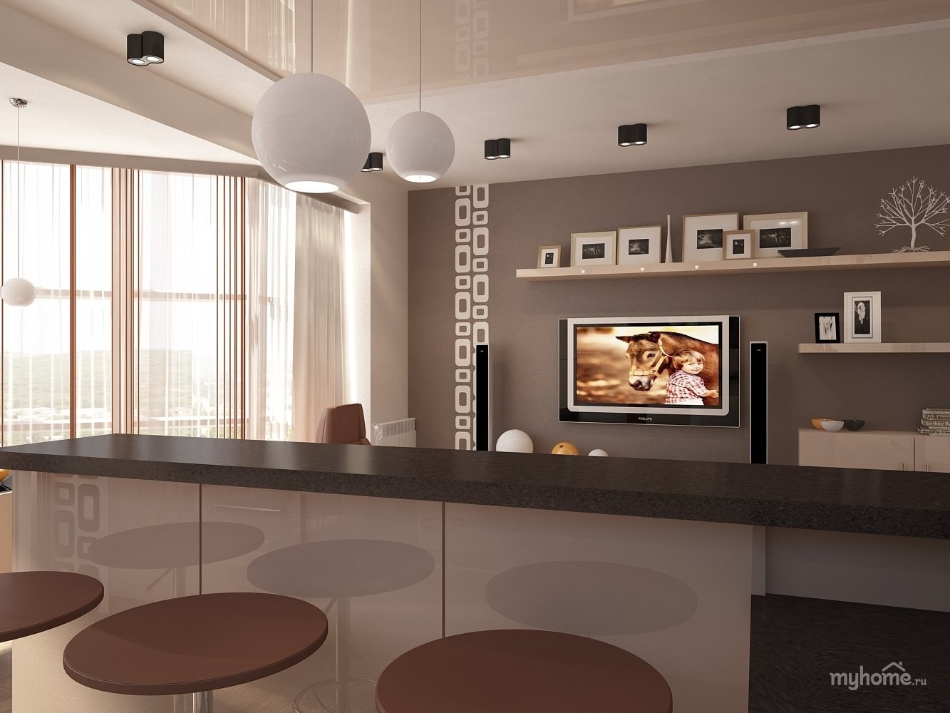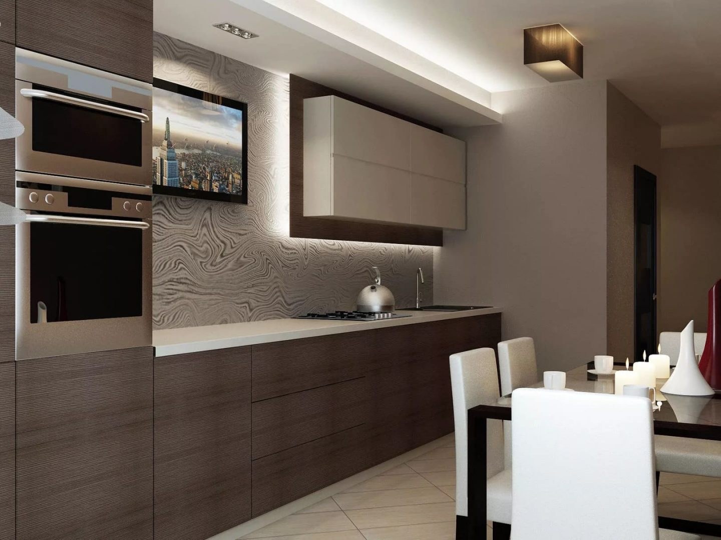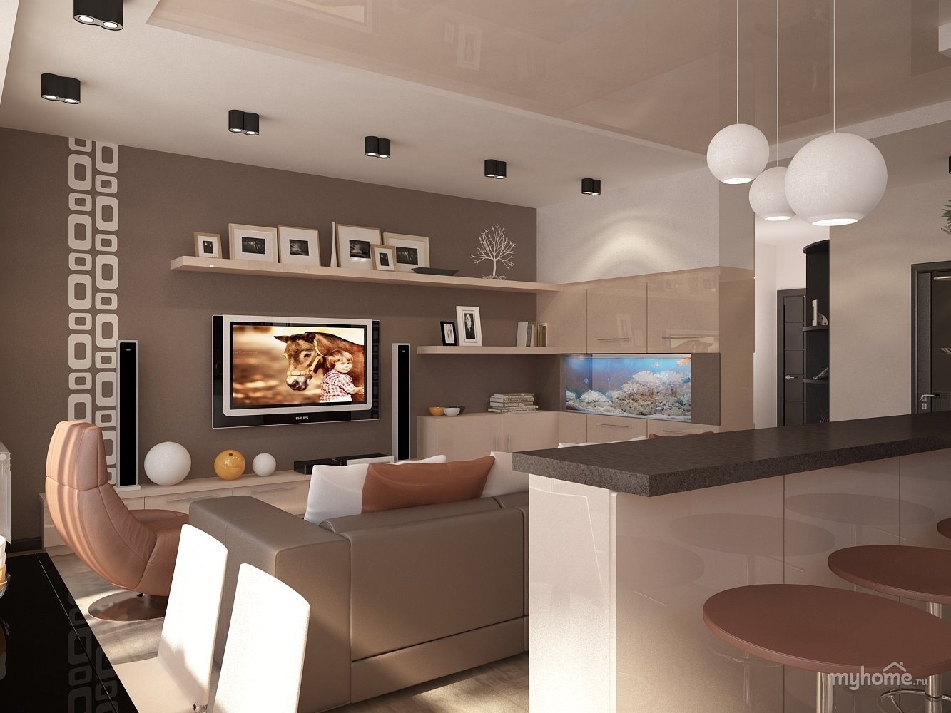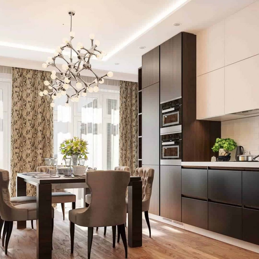 Кухня гостиная в кофейных тонах