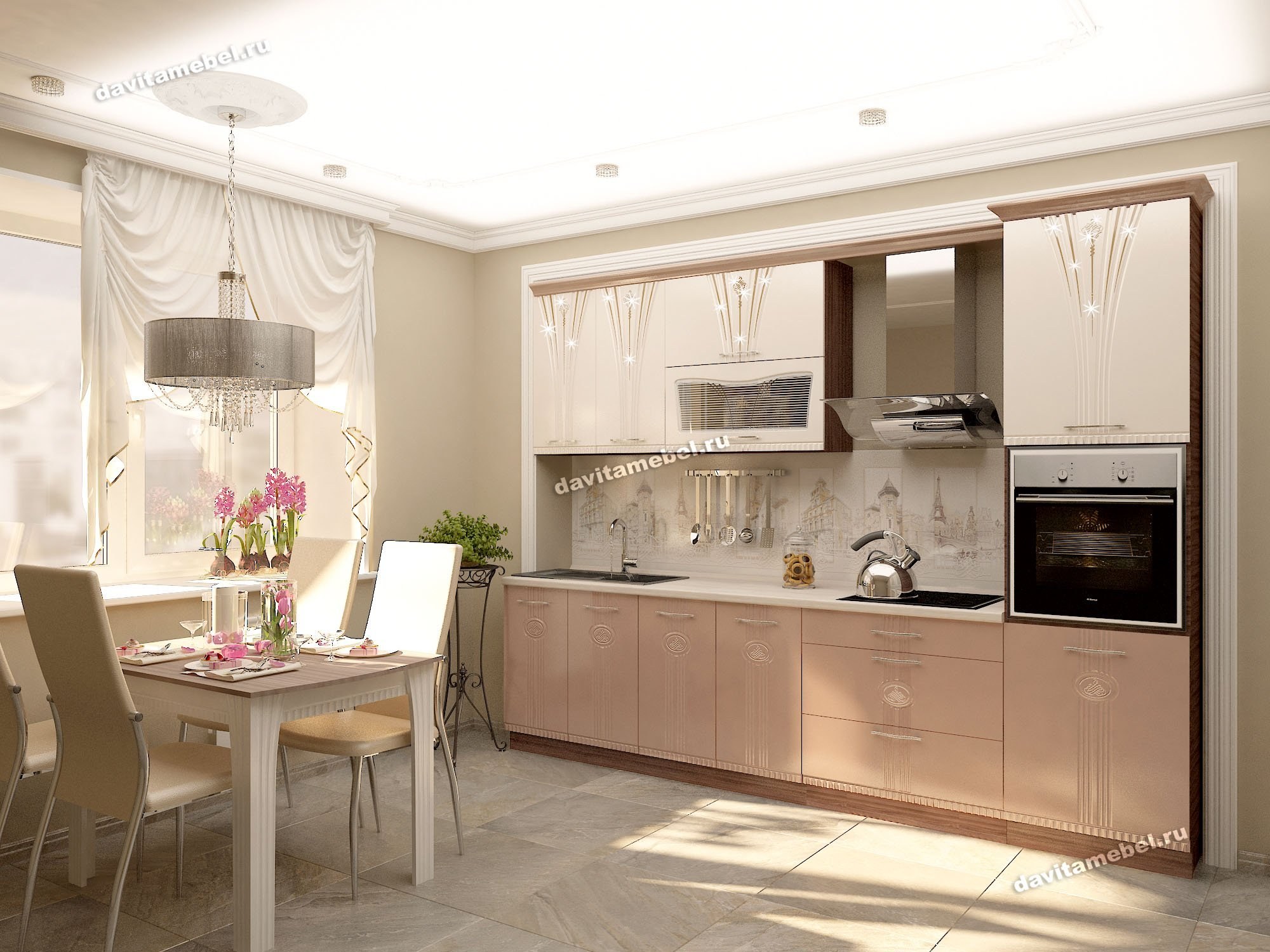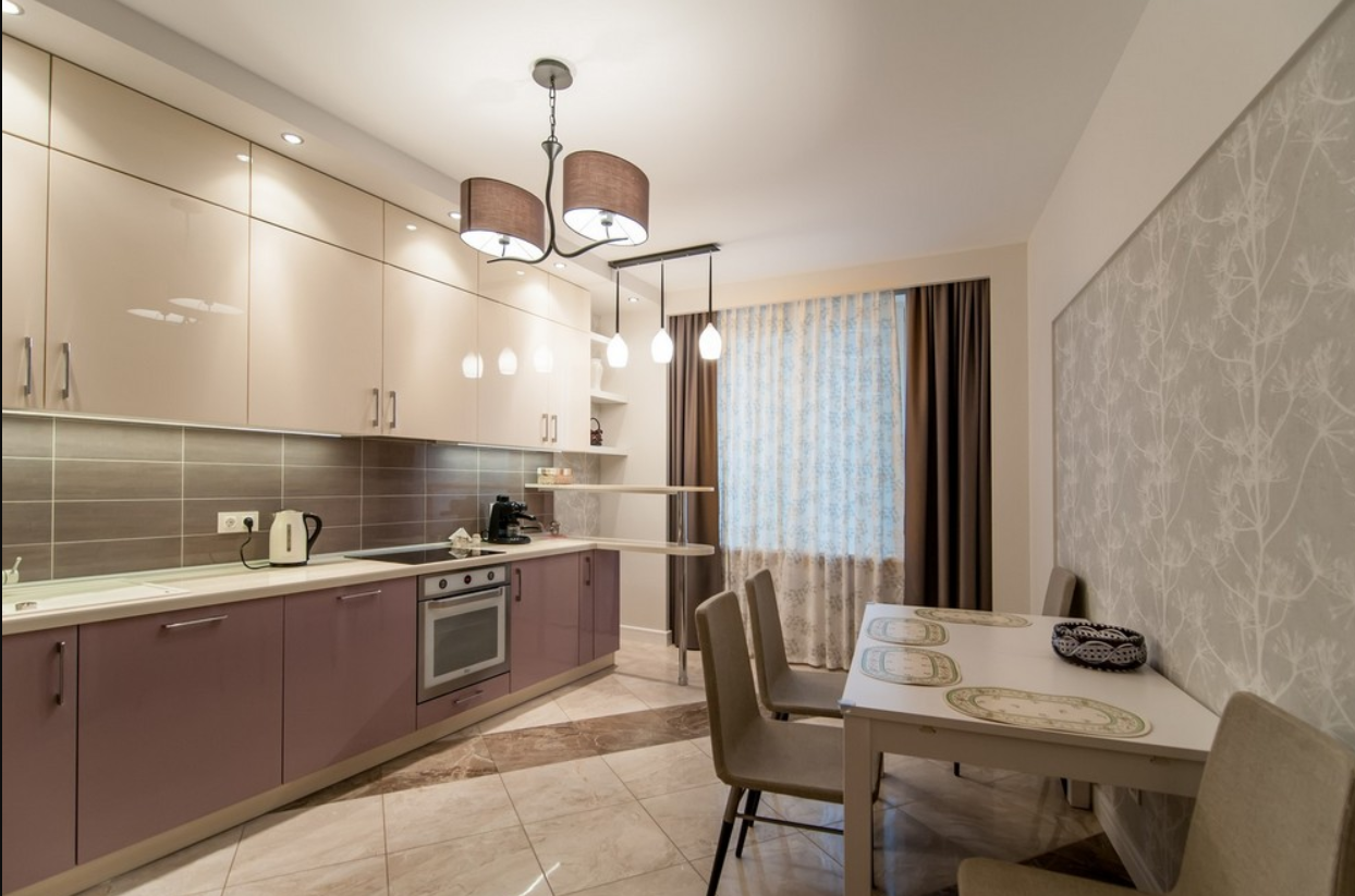 Кухня в бежево розовых тонах
