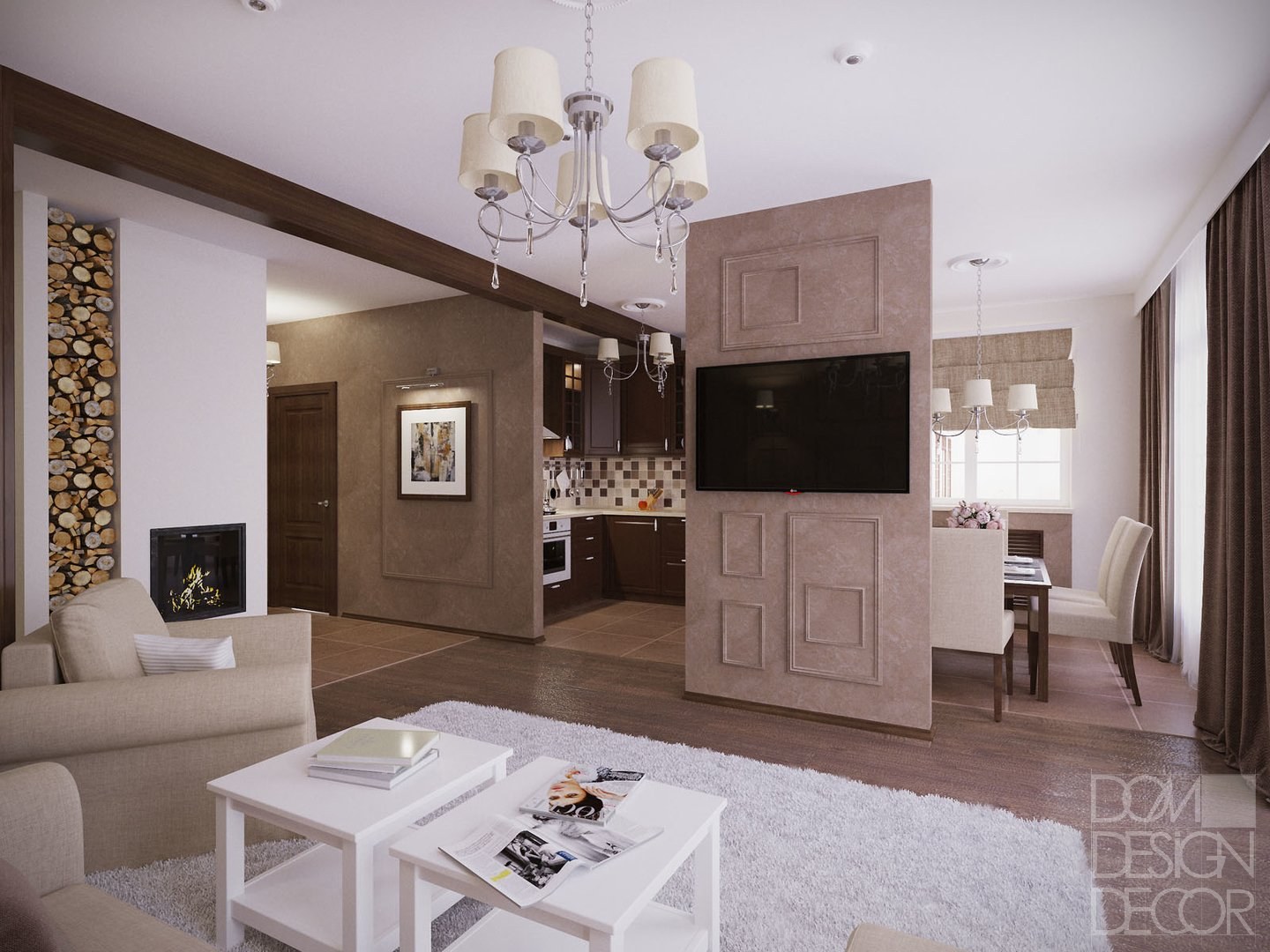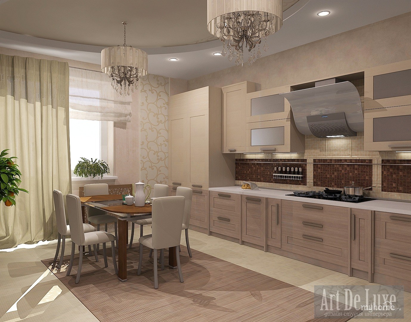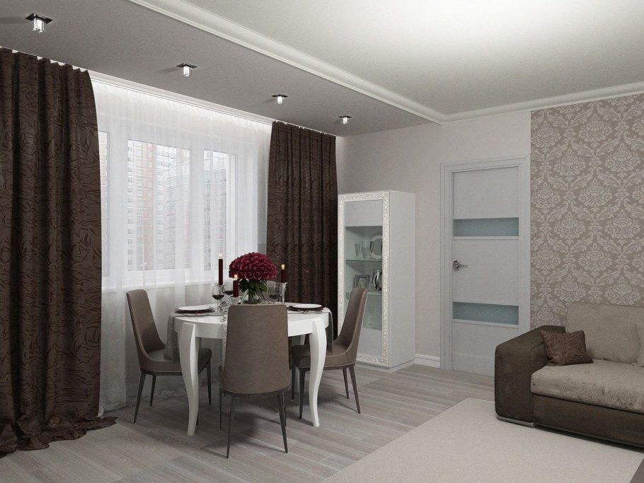 Кухня зал в кофейных тонах
