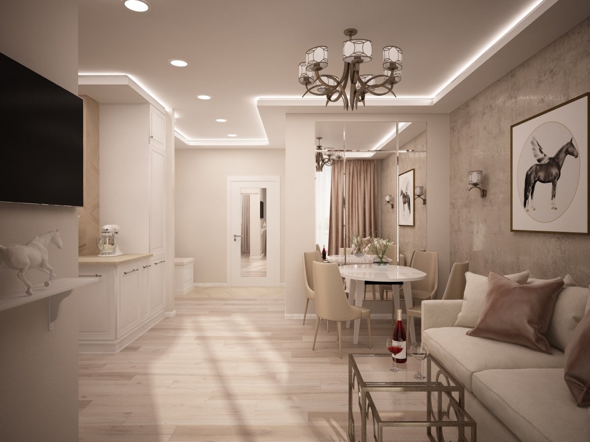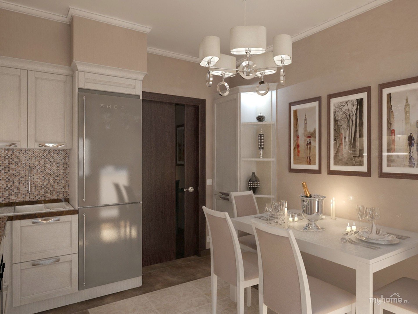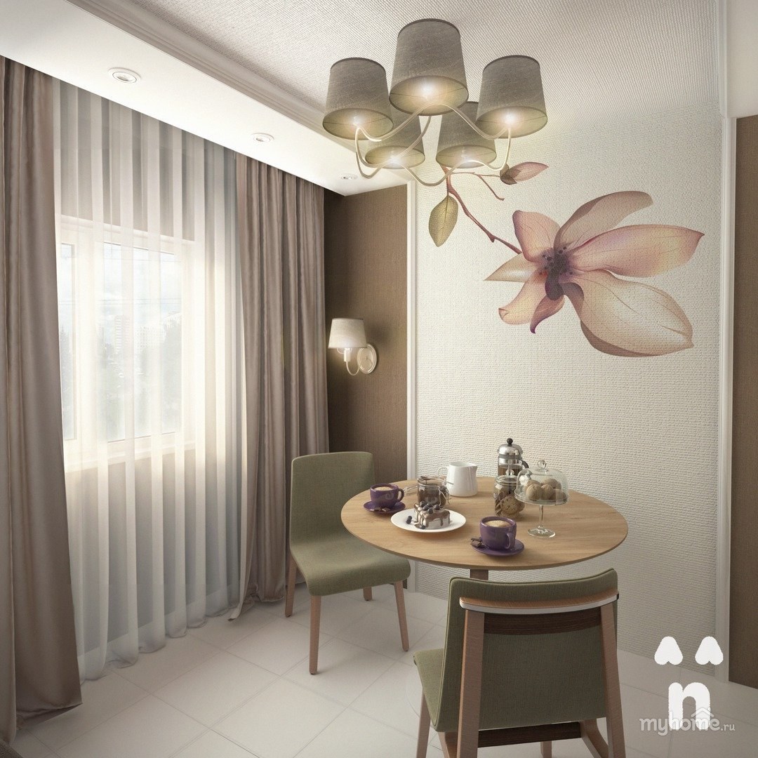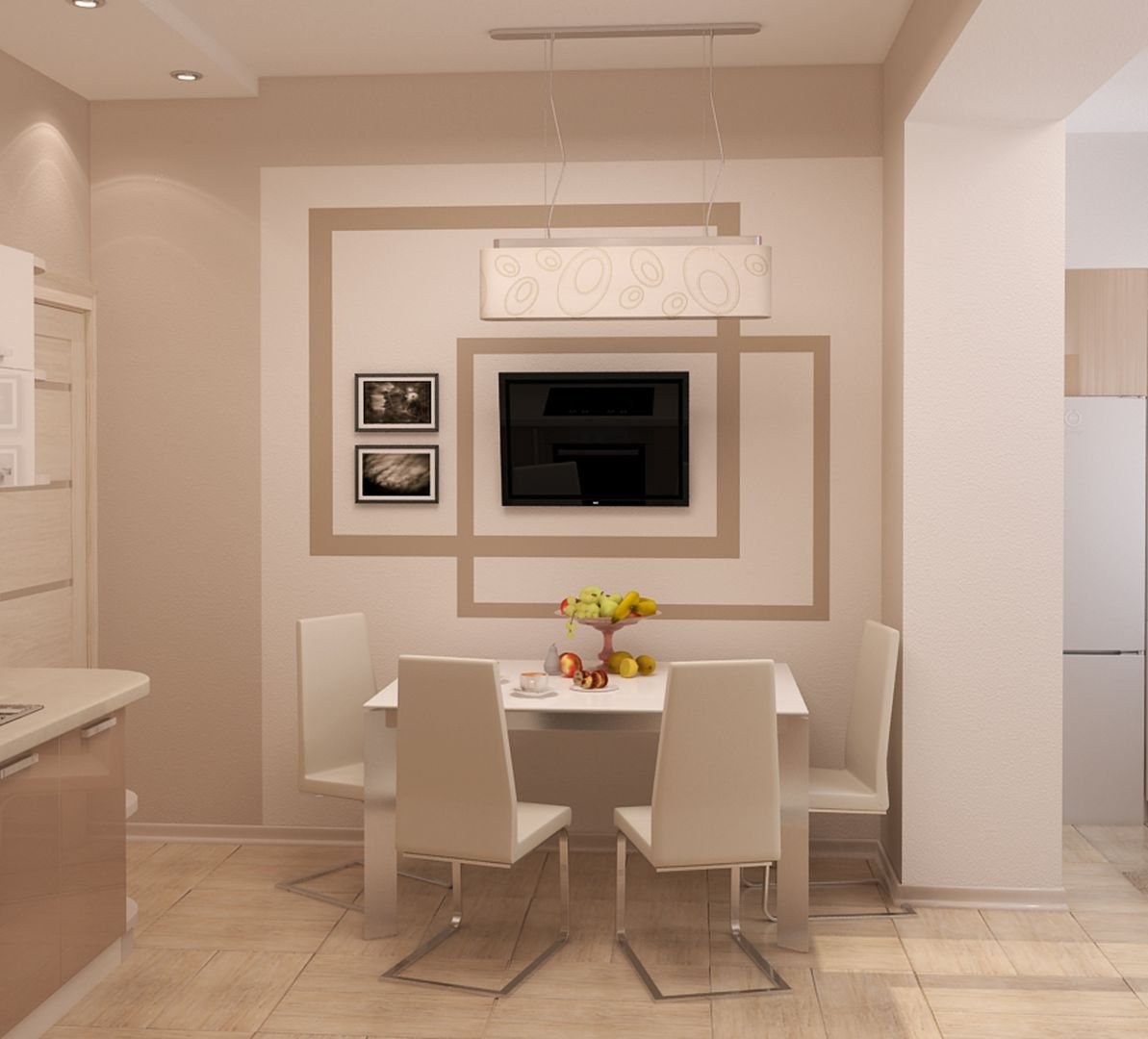 Бежевые стены в интерьере кухни