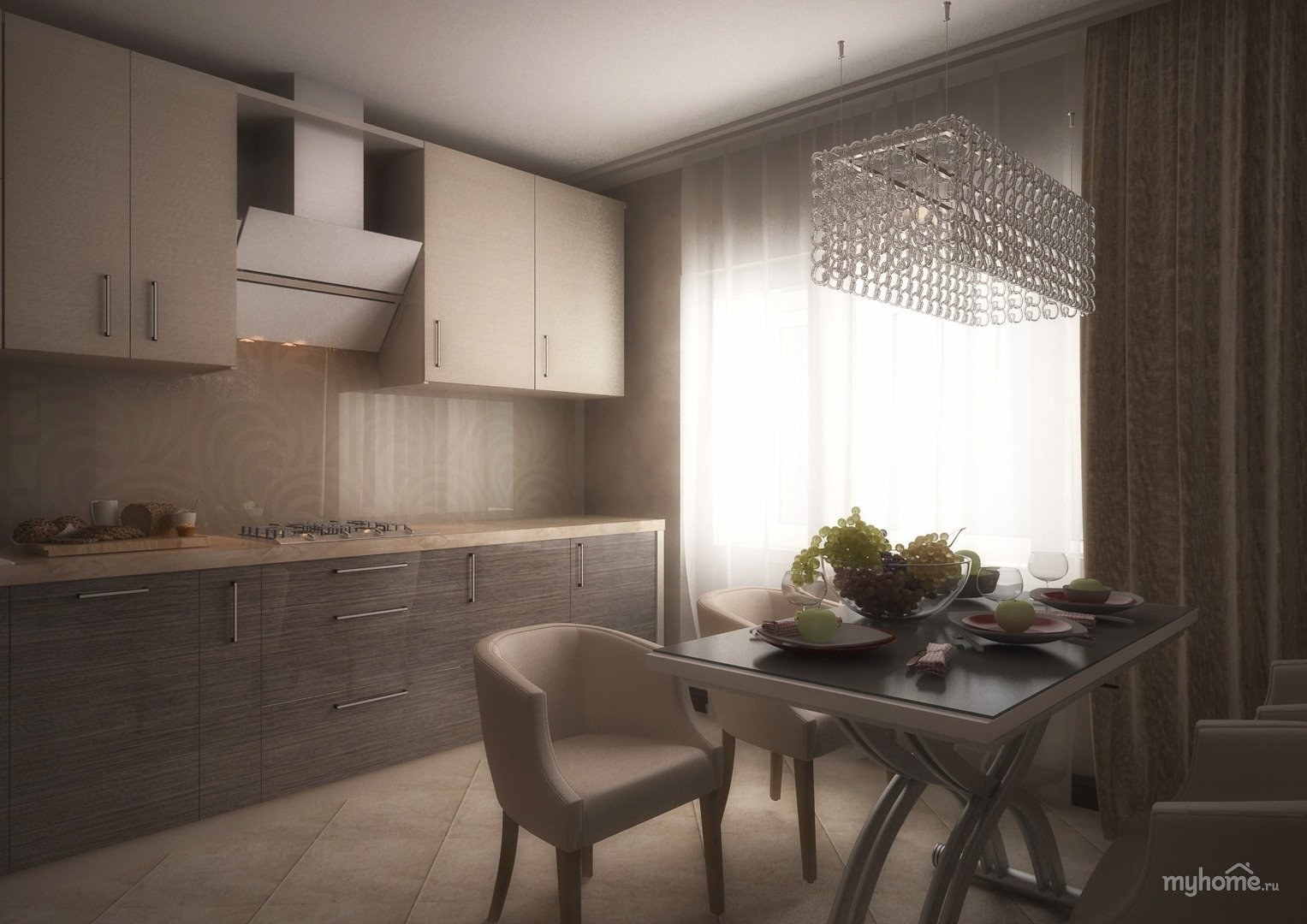 Кухня в серо бежевых тонах