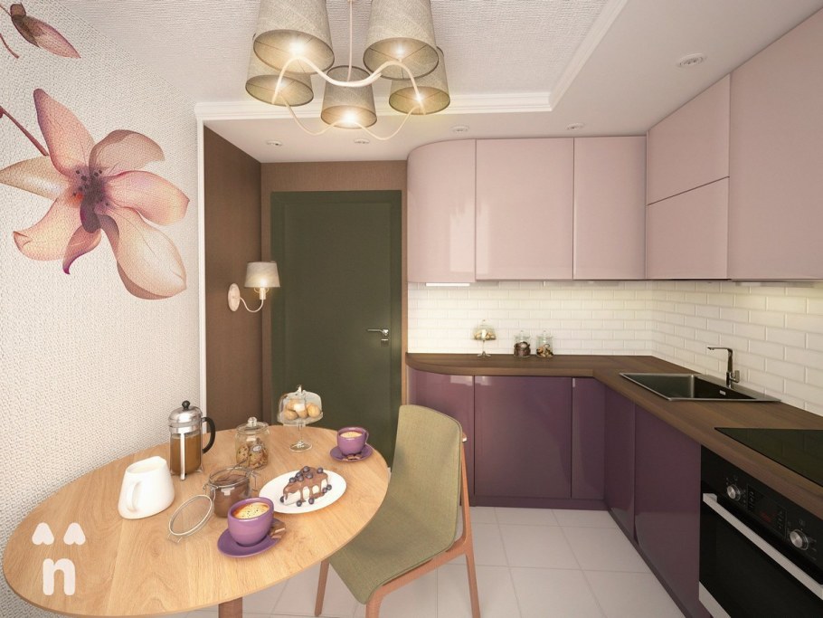 Кухня в розово коричневых тонах