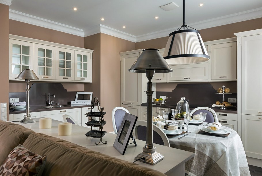 Кухня в шоколадном цвете в неоклассическом стиле