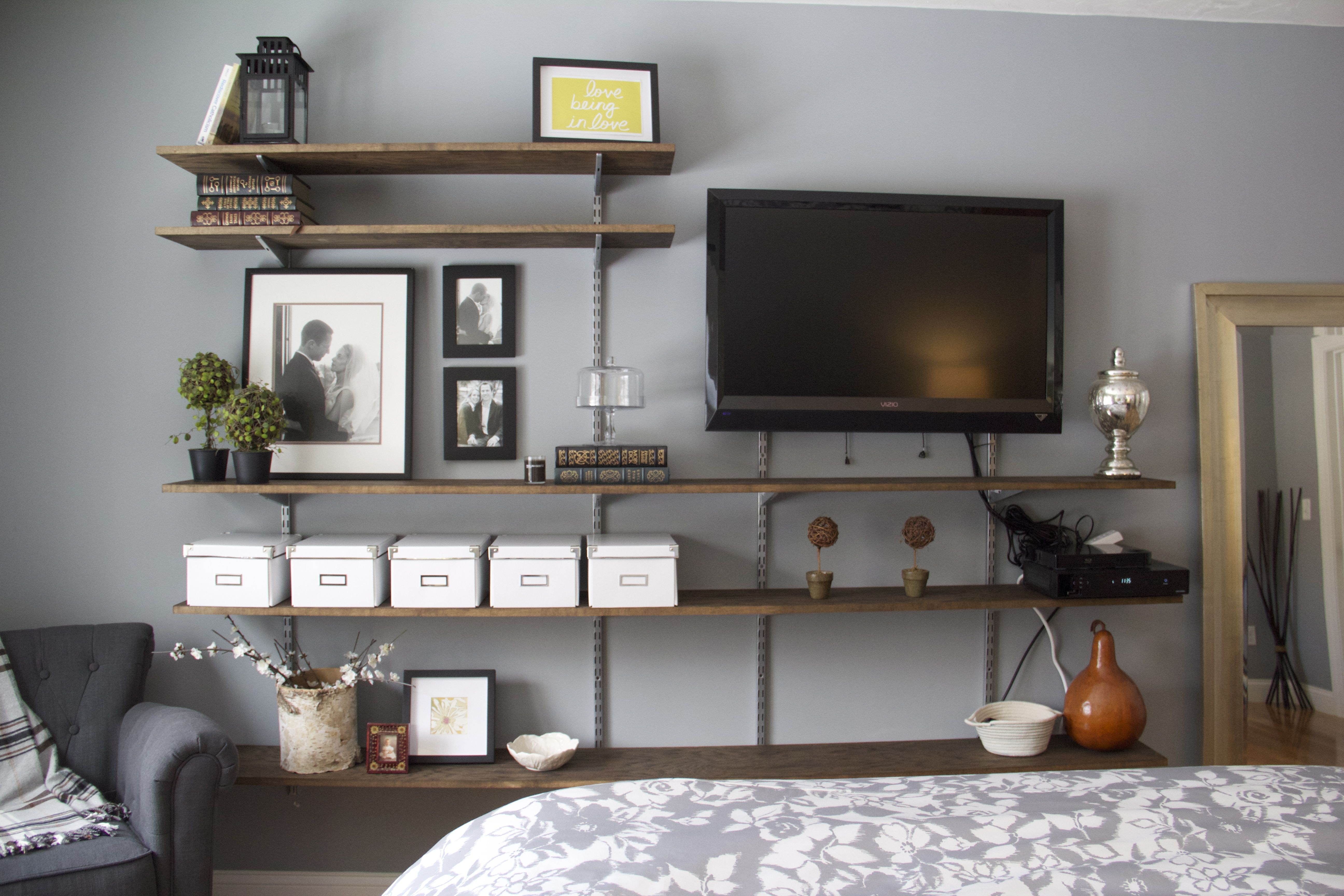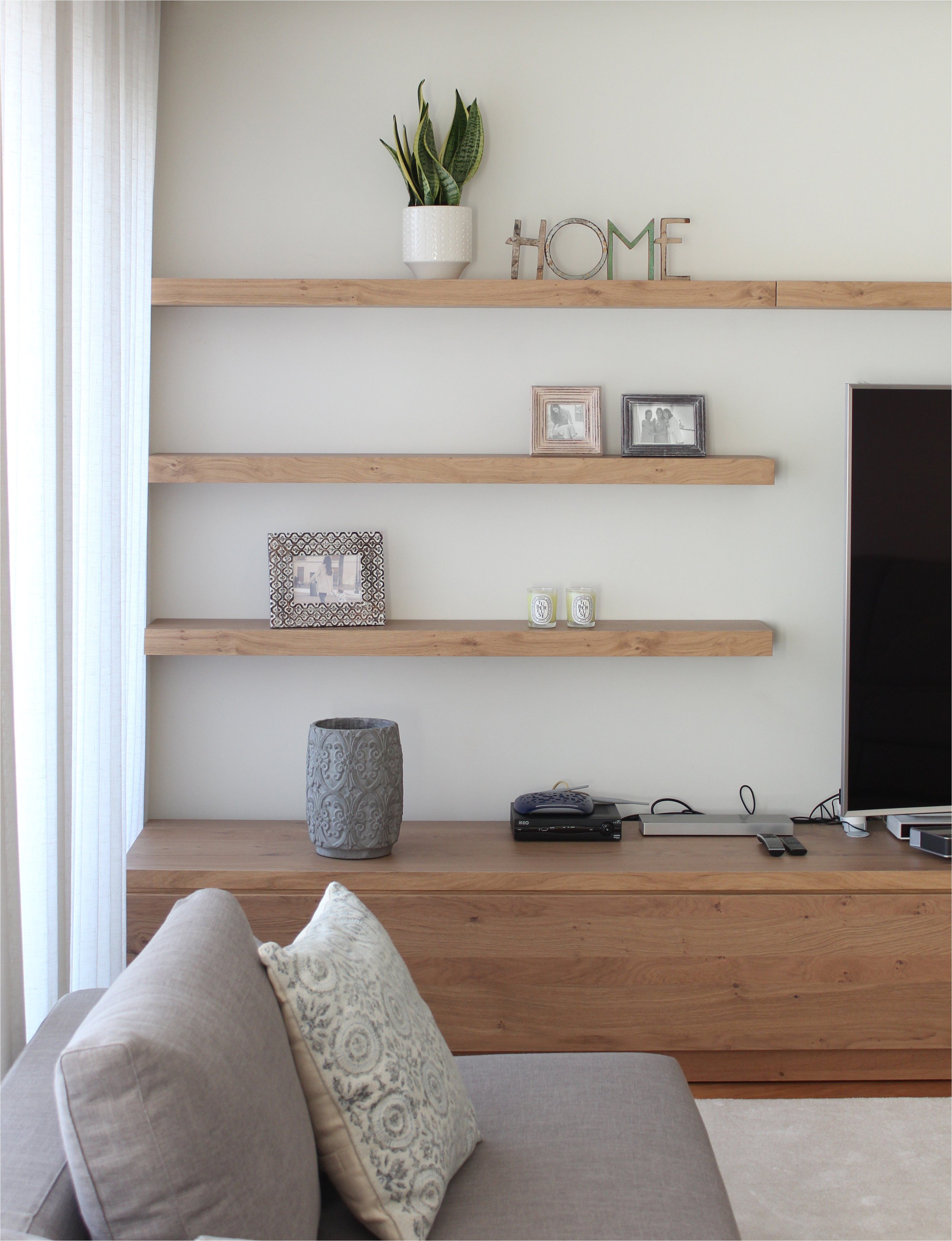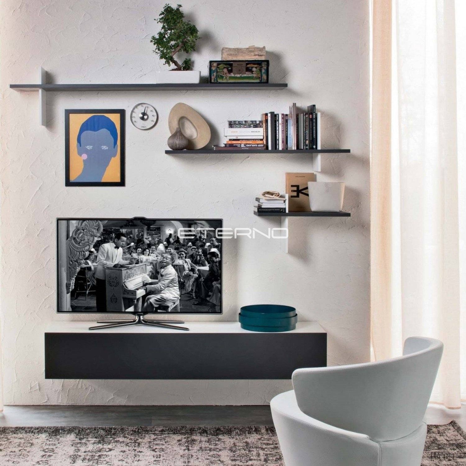 Полки над телевизором в гостиной