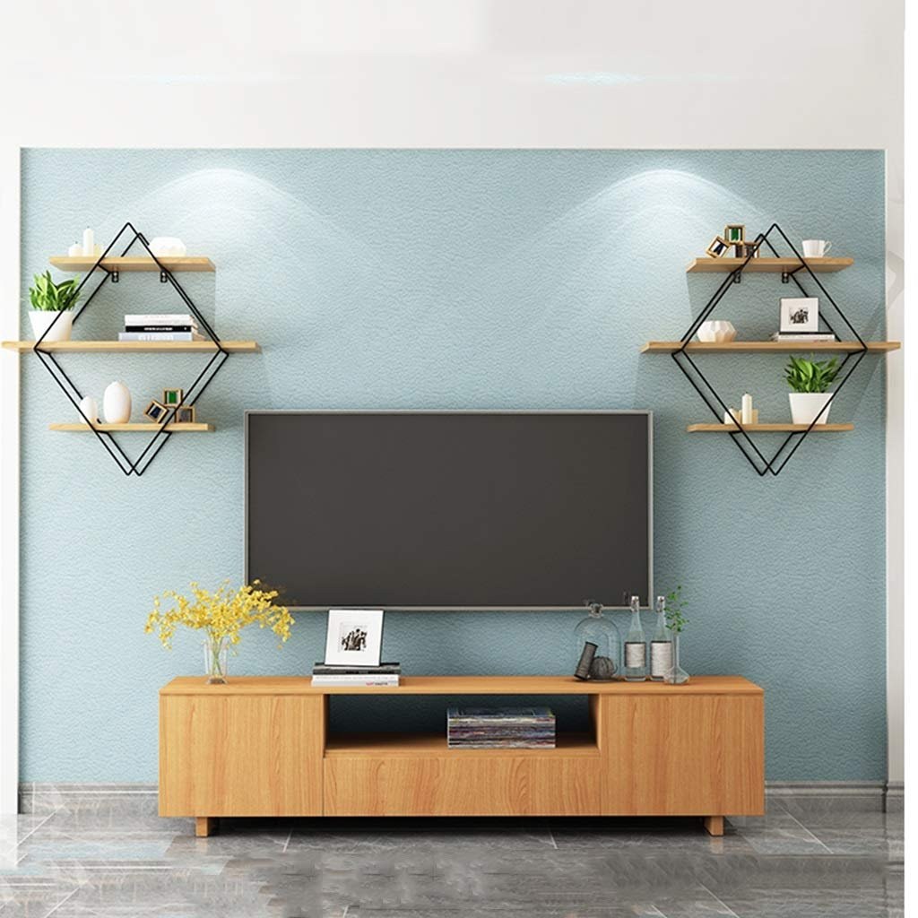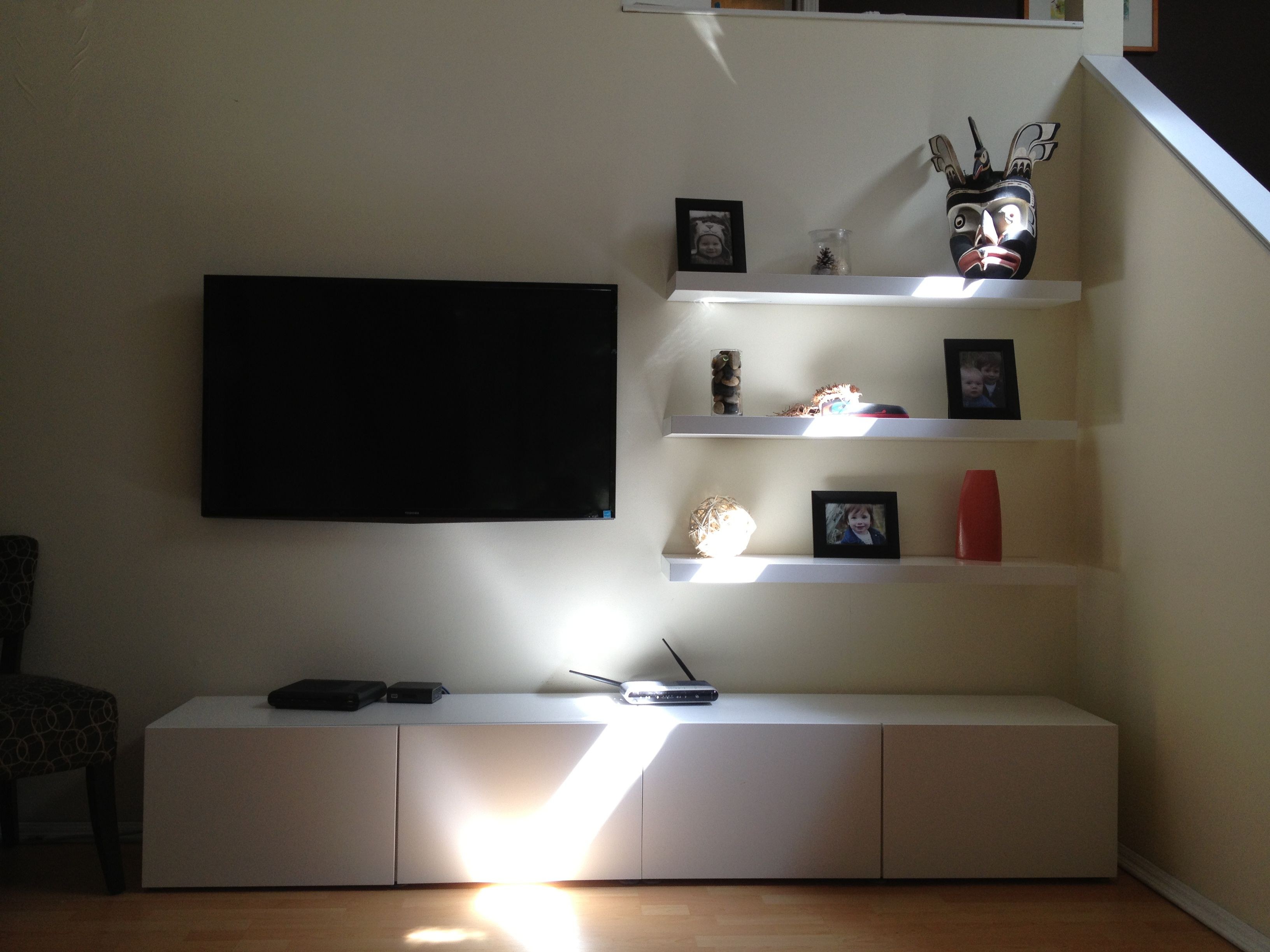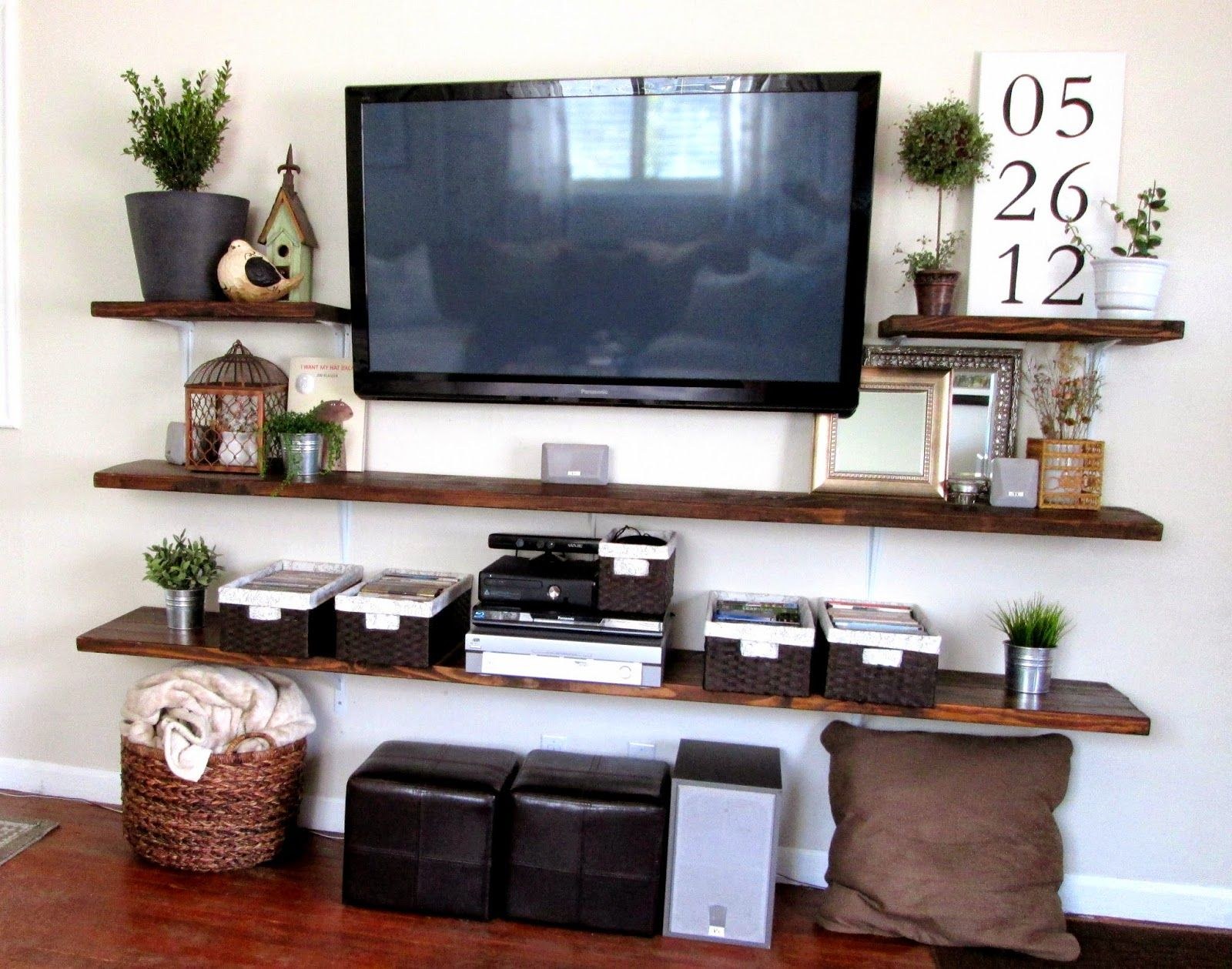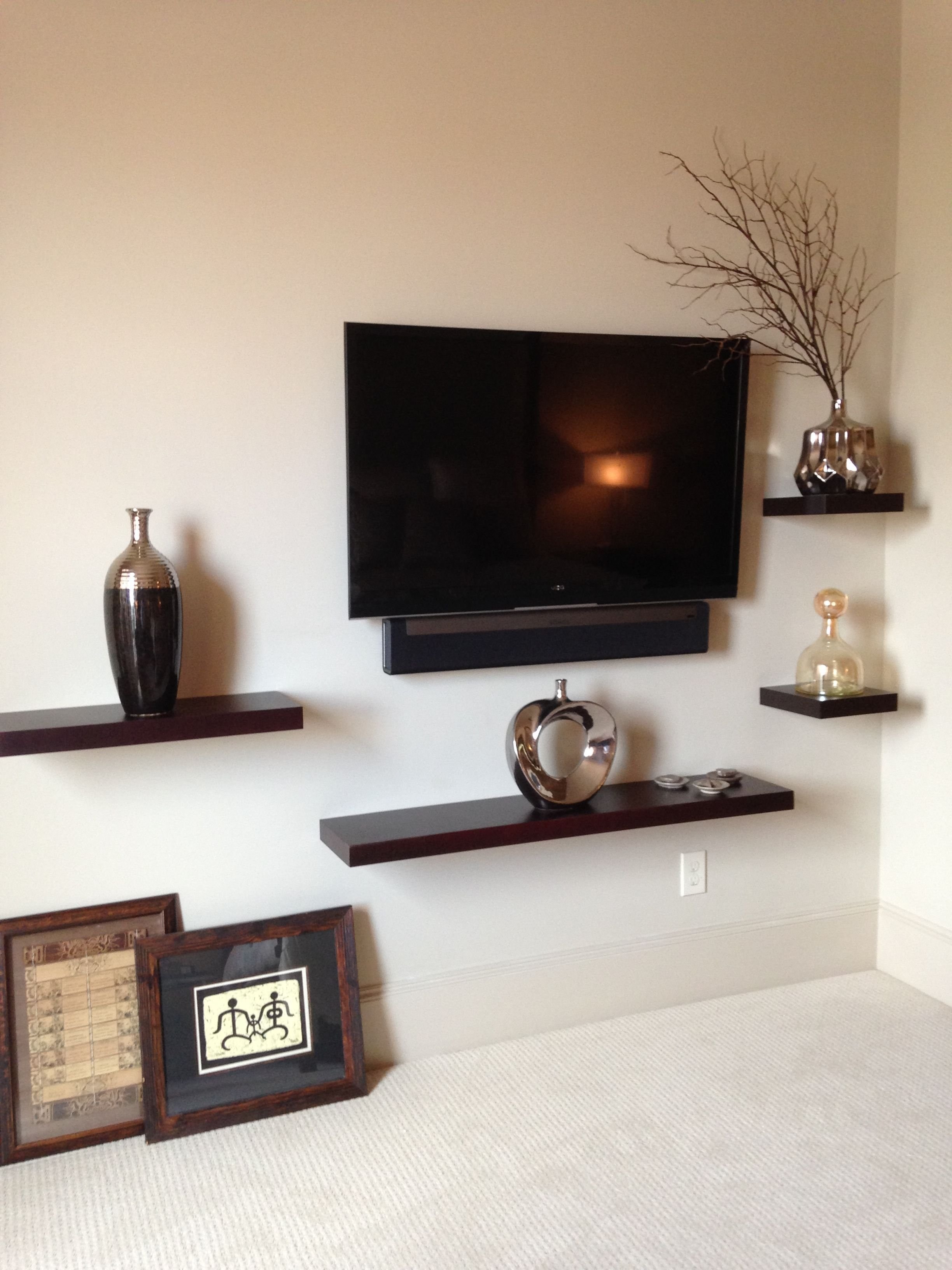 Полочки настенные рядом с телевизором