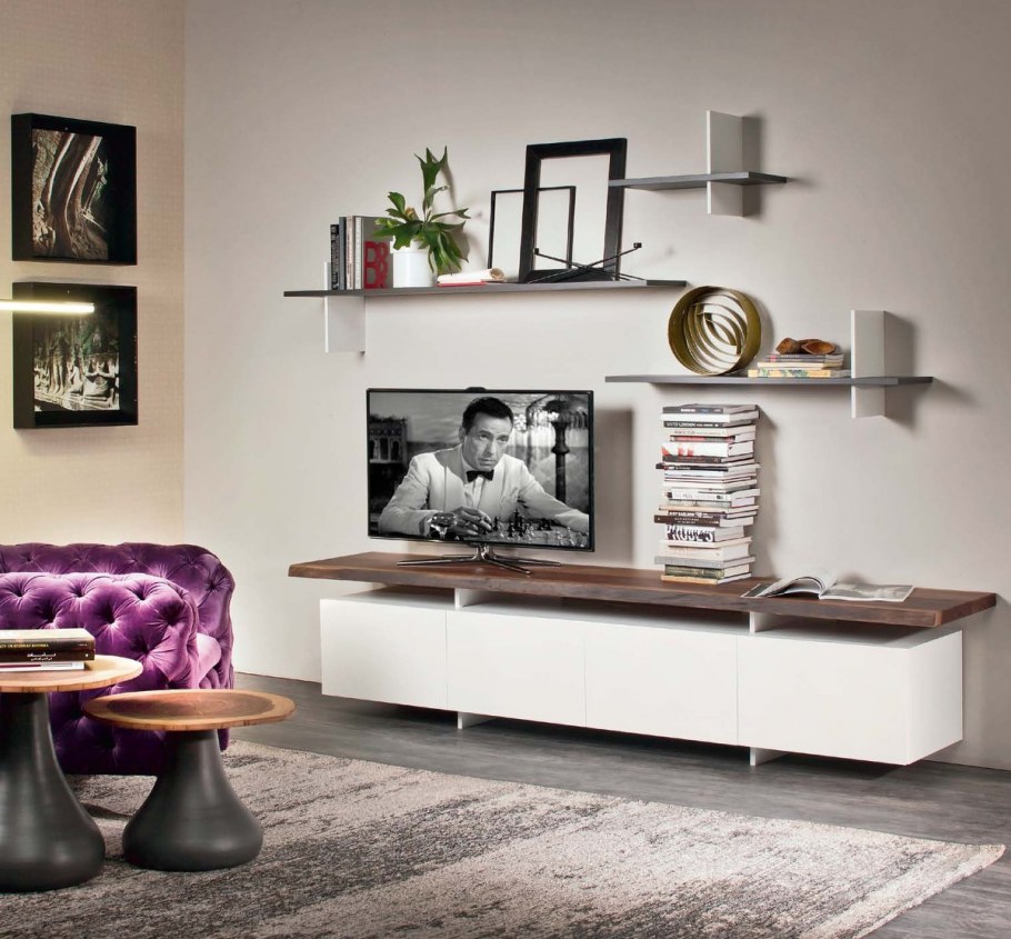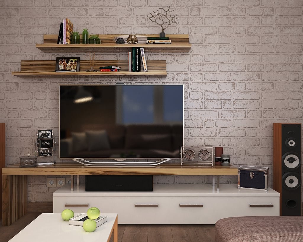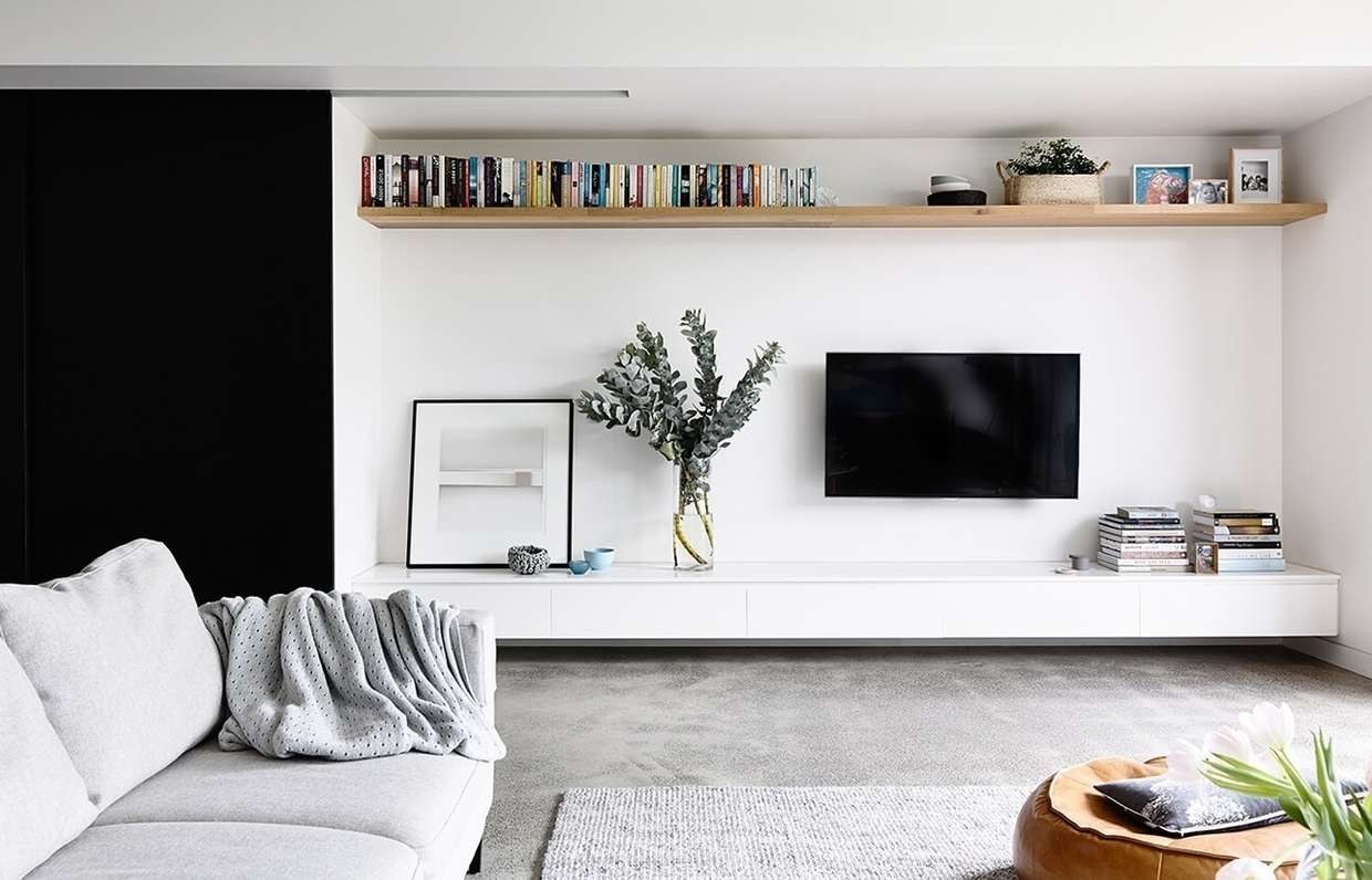 Полки на стену с телевизором в интерьере