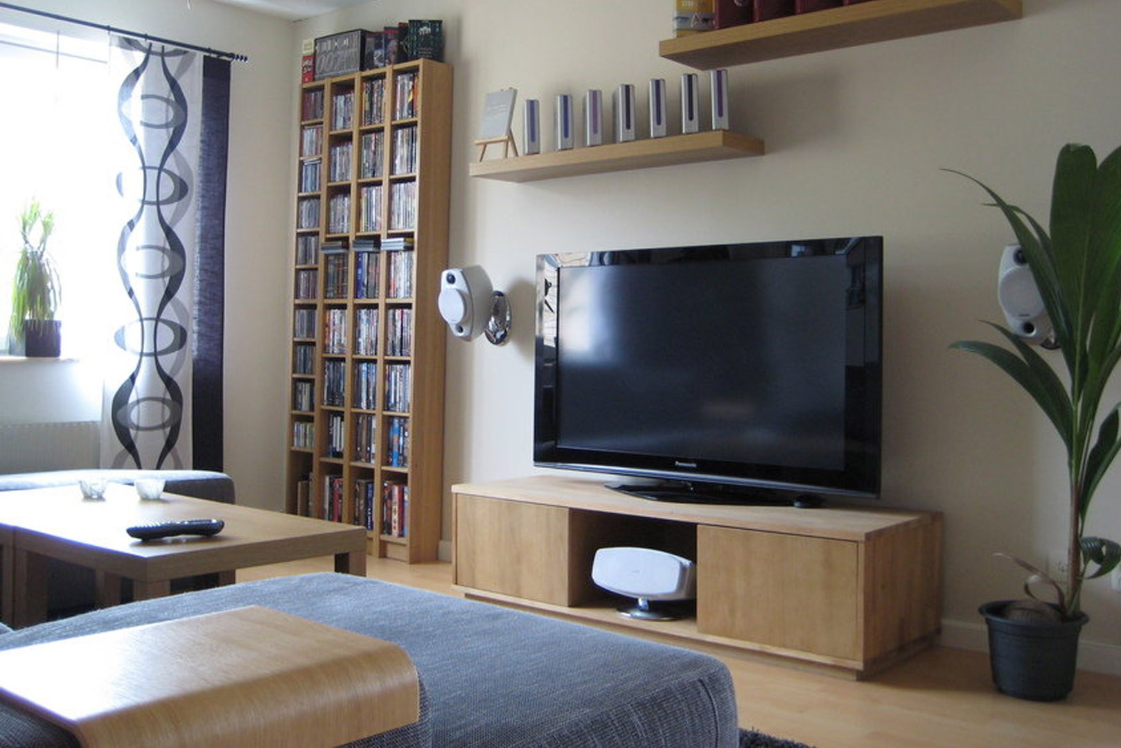 Стеллаж рядом с телевизором