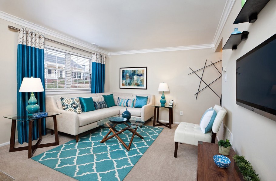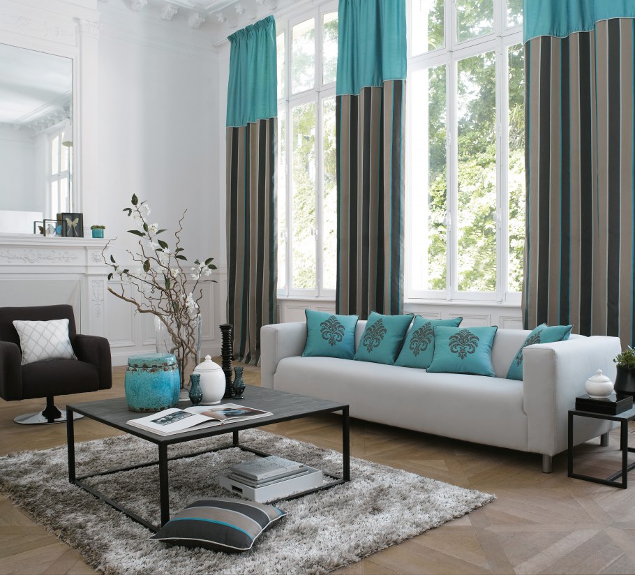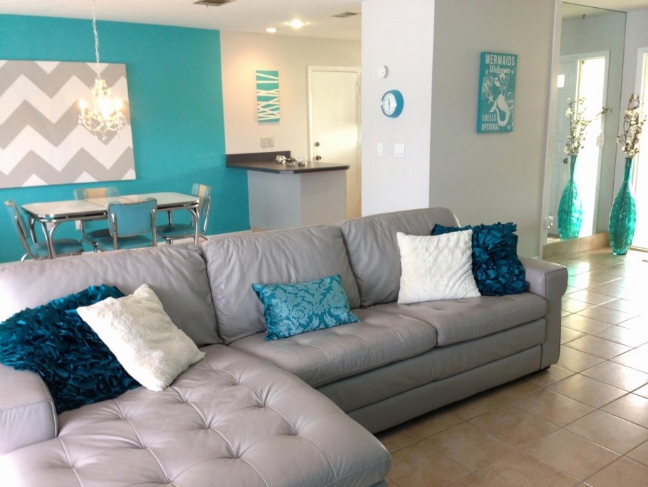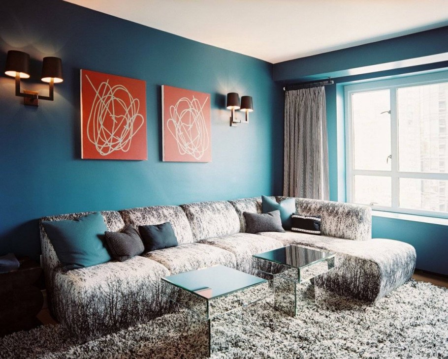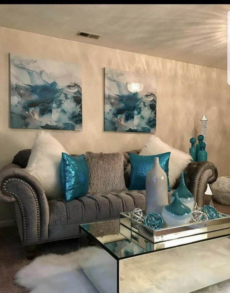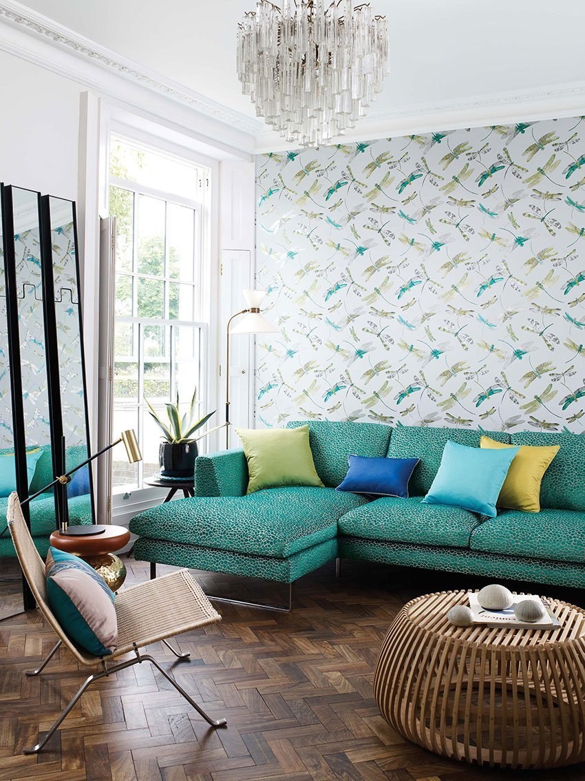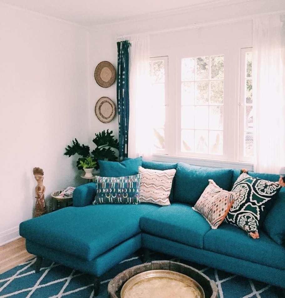 Дизайн комнаты с бирюзовым диваном (75 фото)