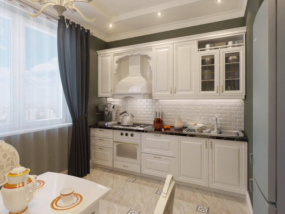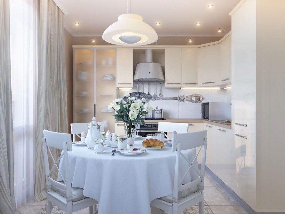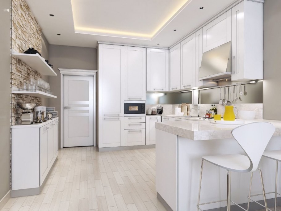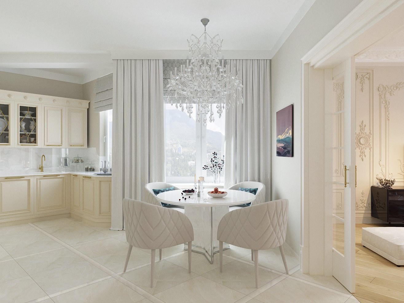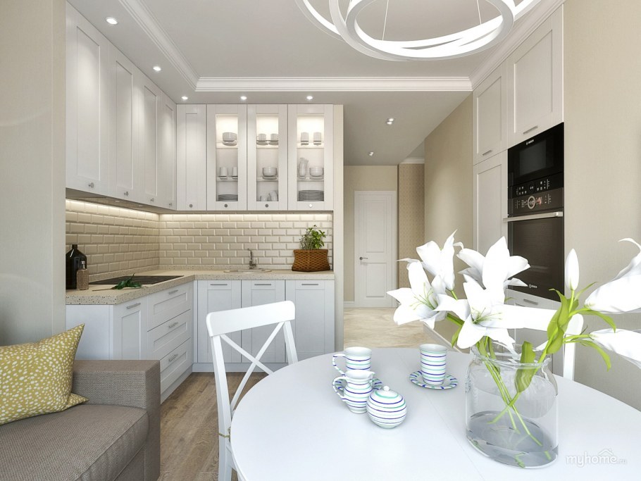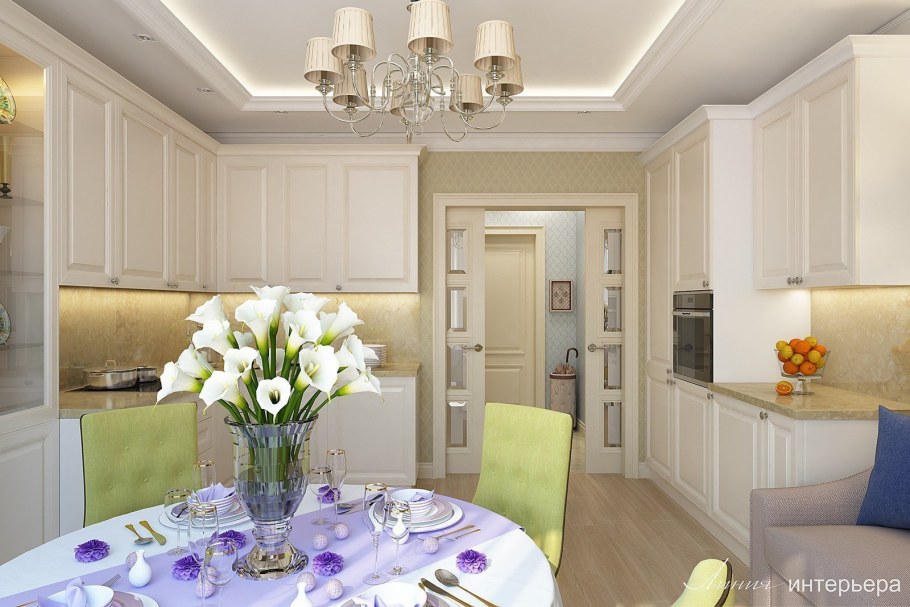 Кухня в стиле Неоклассика угловая в светлых тонах