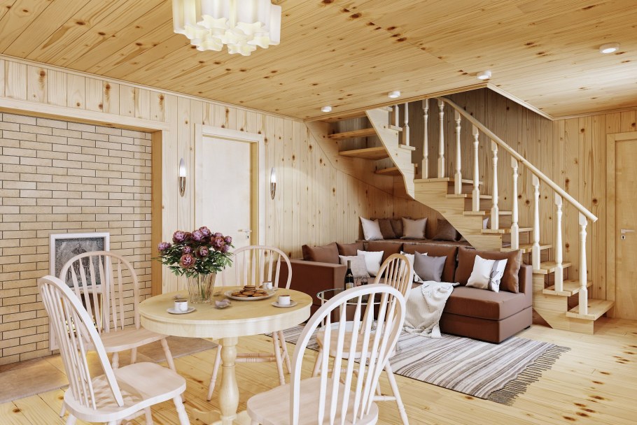 Интерьер садового домика внутри эконом класса с печкой (82 фото)