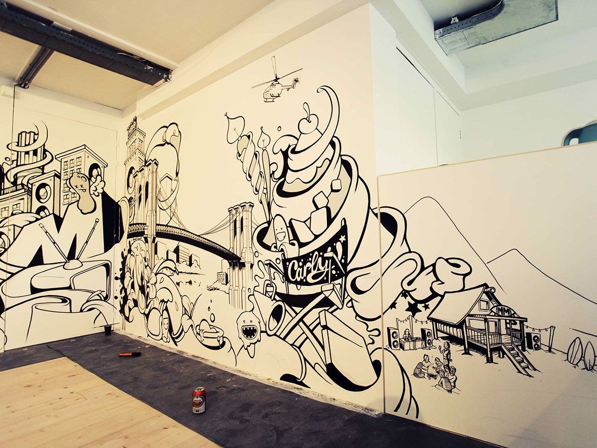 Граффити в офисе на стене