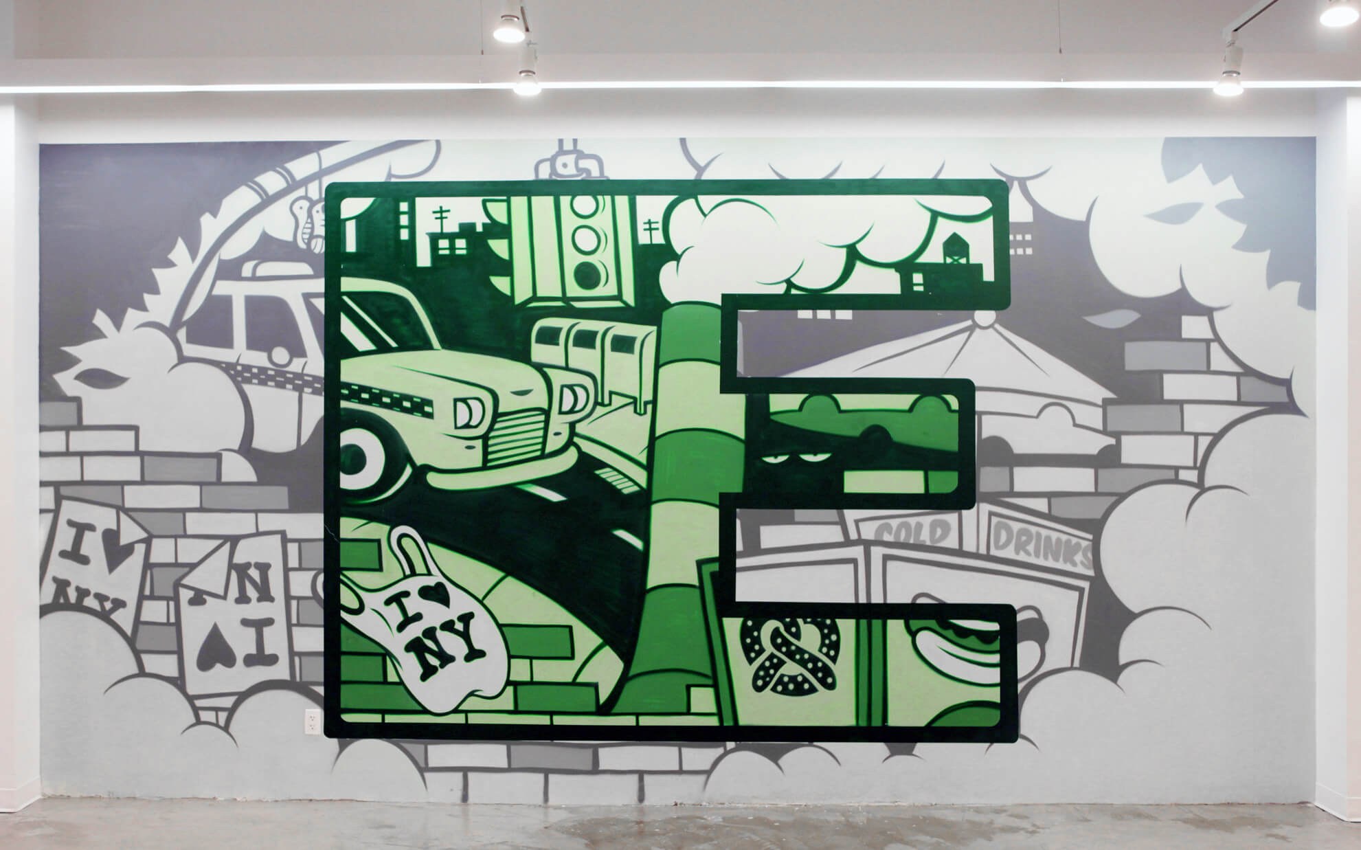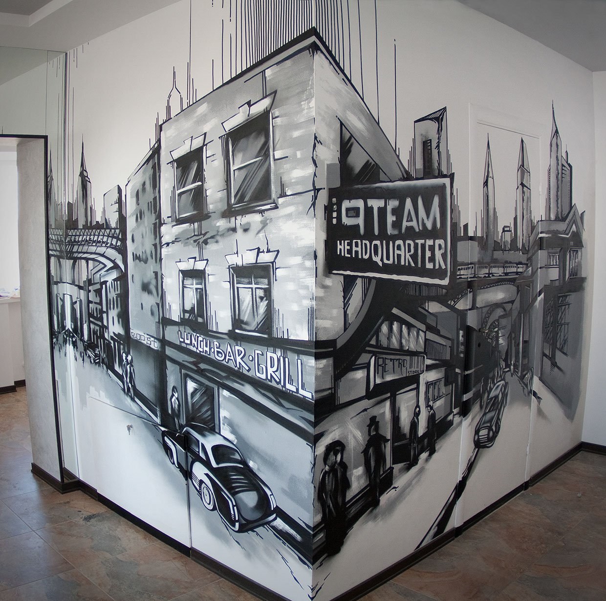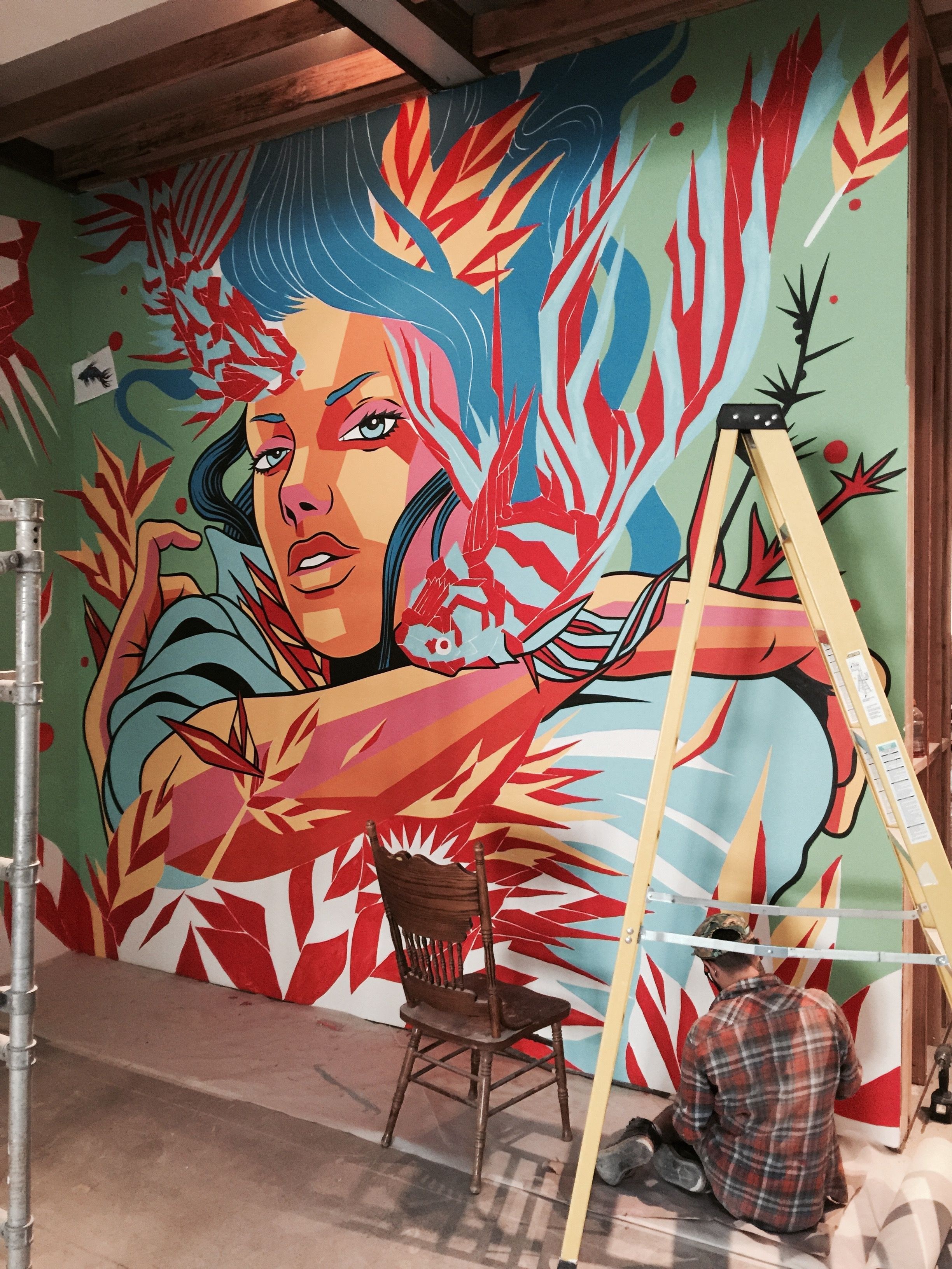 Роспись стены в кафе стиль лофт