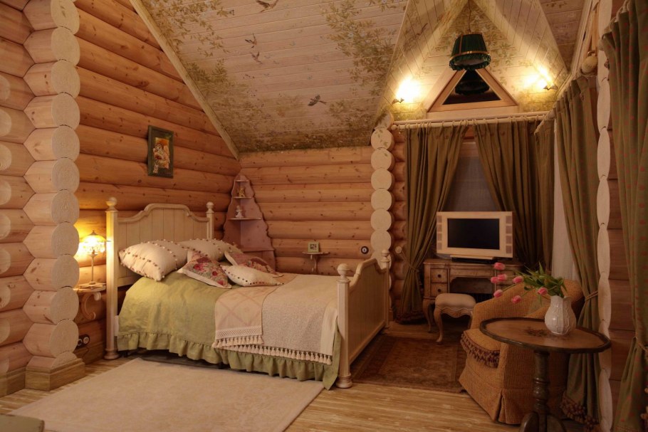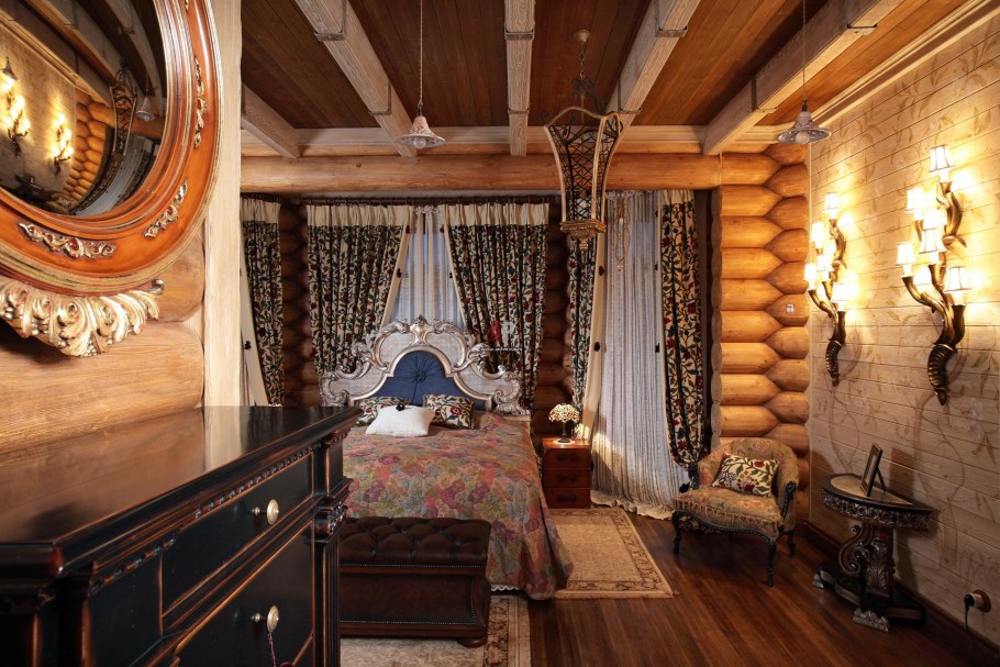 Интерьер в стиле русская усадьба в бревенчатом доме
